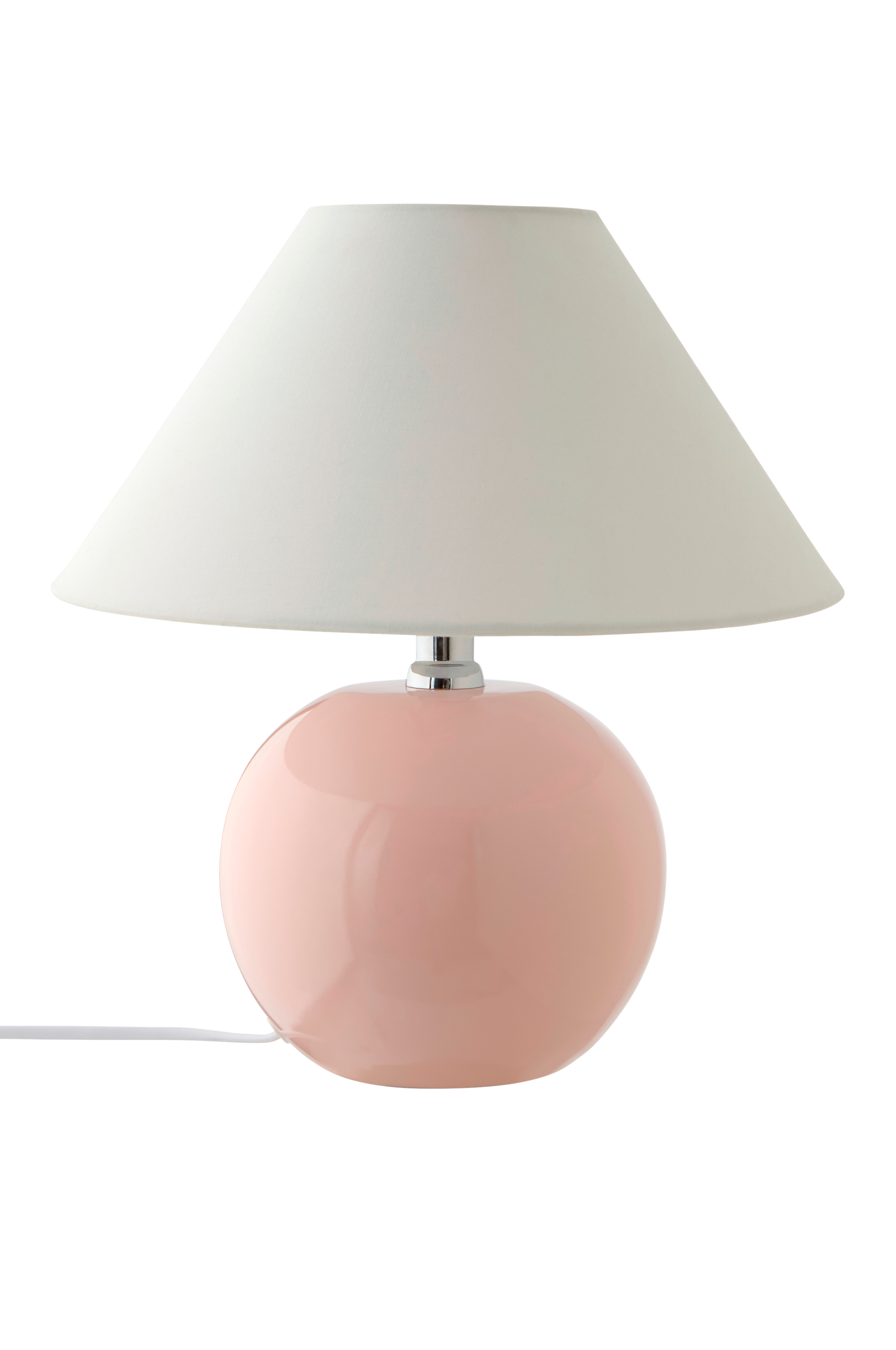 KARAMELL bordslampa tillför känsla till din inredning med en bomullsblandad skärm och blank keramisk bas. Den är 29 cm hög och har ett elegant stålstativ och en kromad hållare som förstärker dess moderna look. Den har en kabelströmbrytare och passar E14 max 8 W glödlampor. Glödlampa ingår ej.
