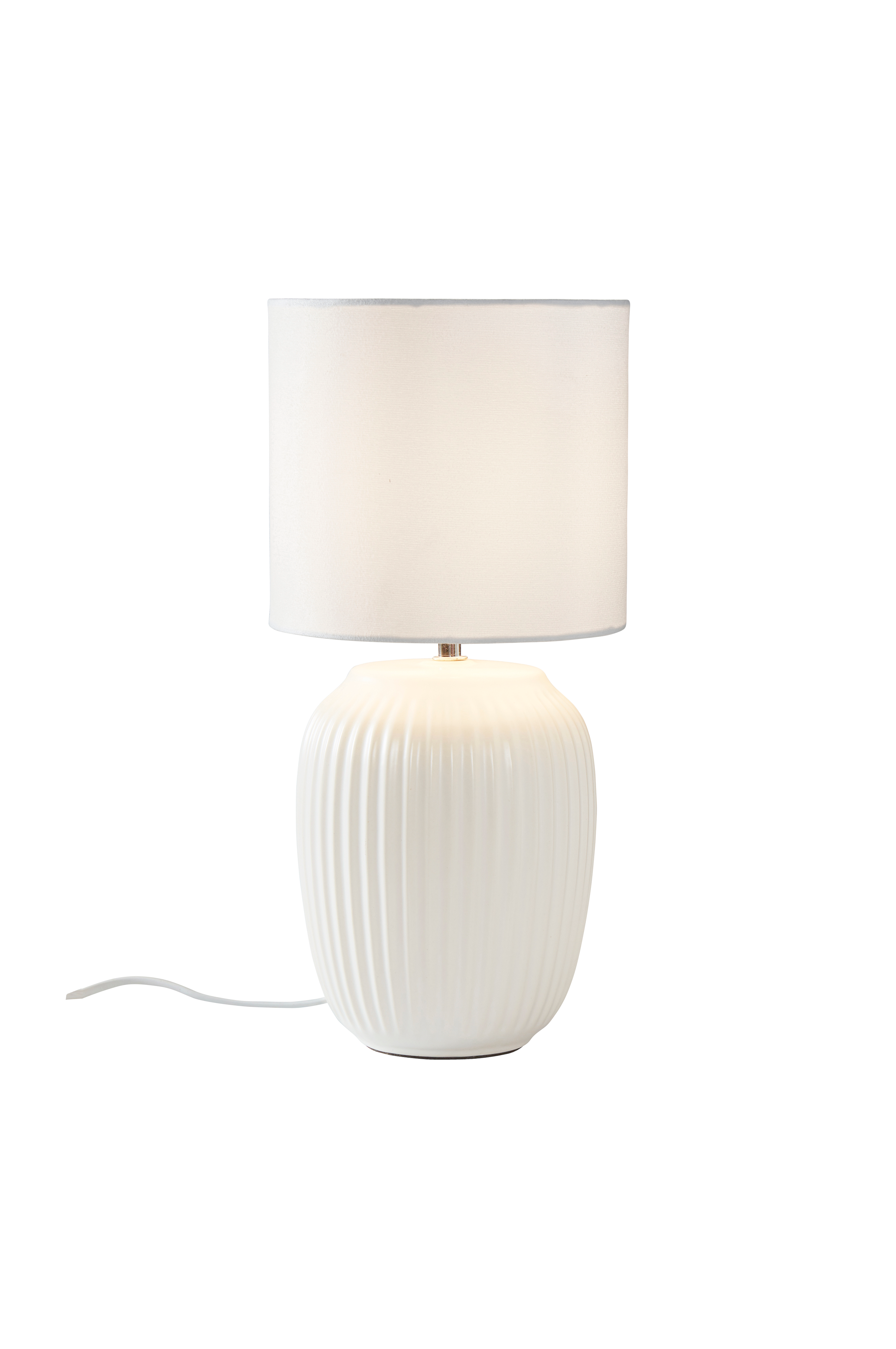 Bordslampa av mattvit keramik med skärm av sammetsviskos. Sladdlängd 1,5 m.
