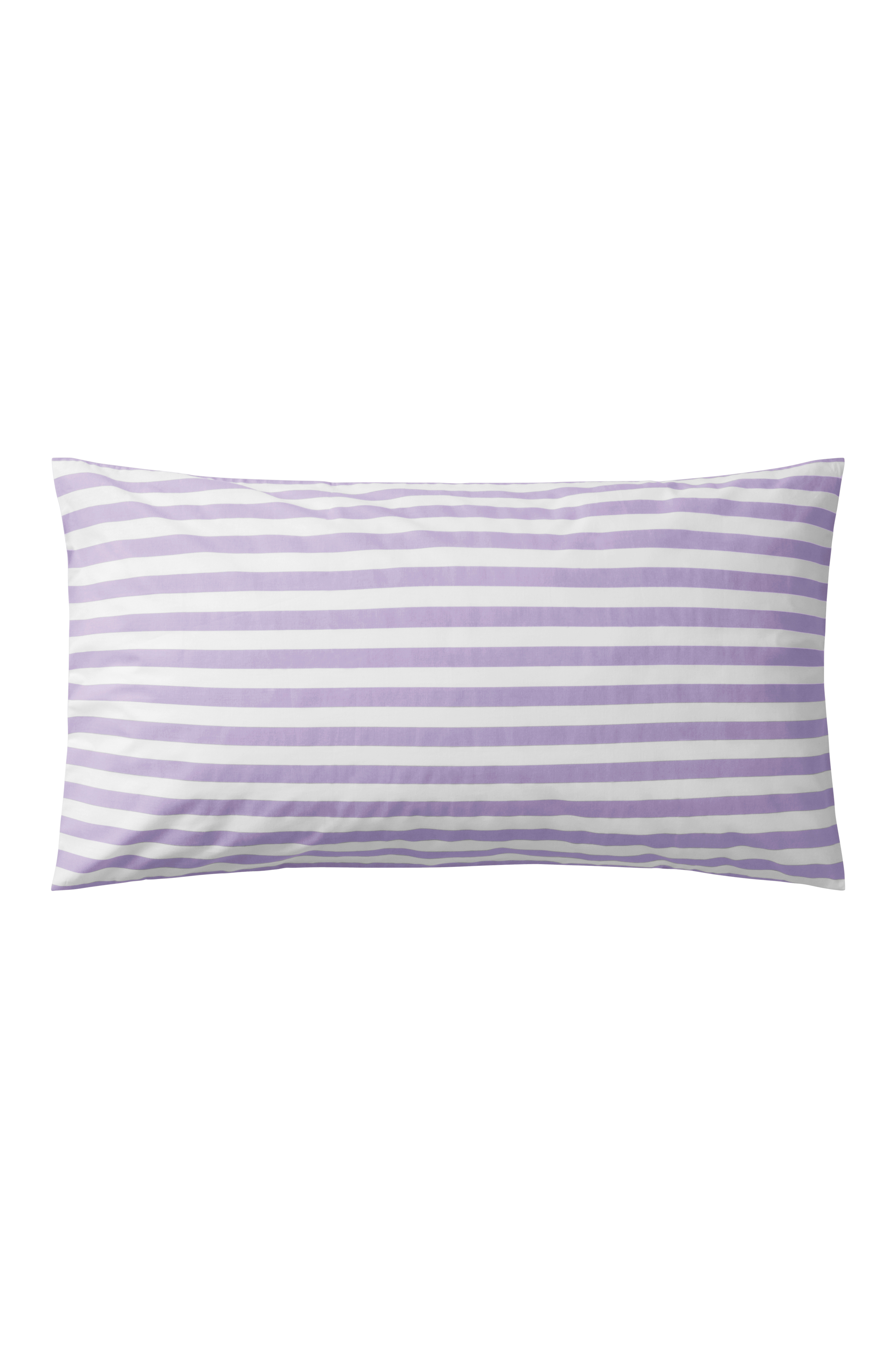 1-pack örngott av av randig bomull. Den tvärgående randningen är tryckt i fräscha, somriga färger och på båda sidor av örngottet. Bomull är en mjuk och behaglig kvalité som känns sval mot huden. Trådtäthet på 144 tc. (Trådtätheten talar om antalet trådar, thread counts, per kvadrattum i ett tyg. Ju högre trådtäthet desto högre kvalité. Med undantag för linne som ofta vävs glesare för att få den rätta känslan.)