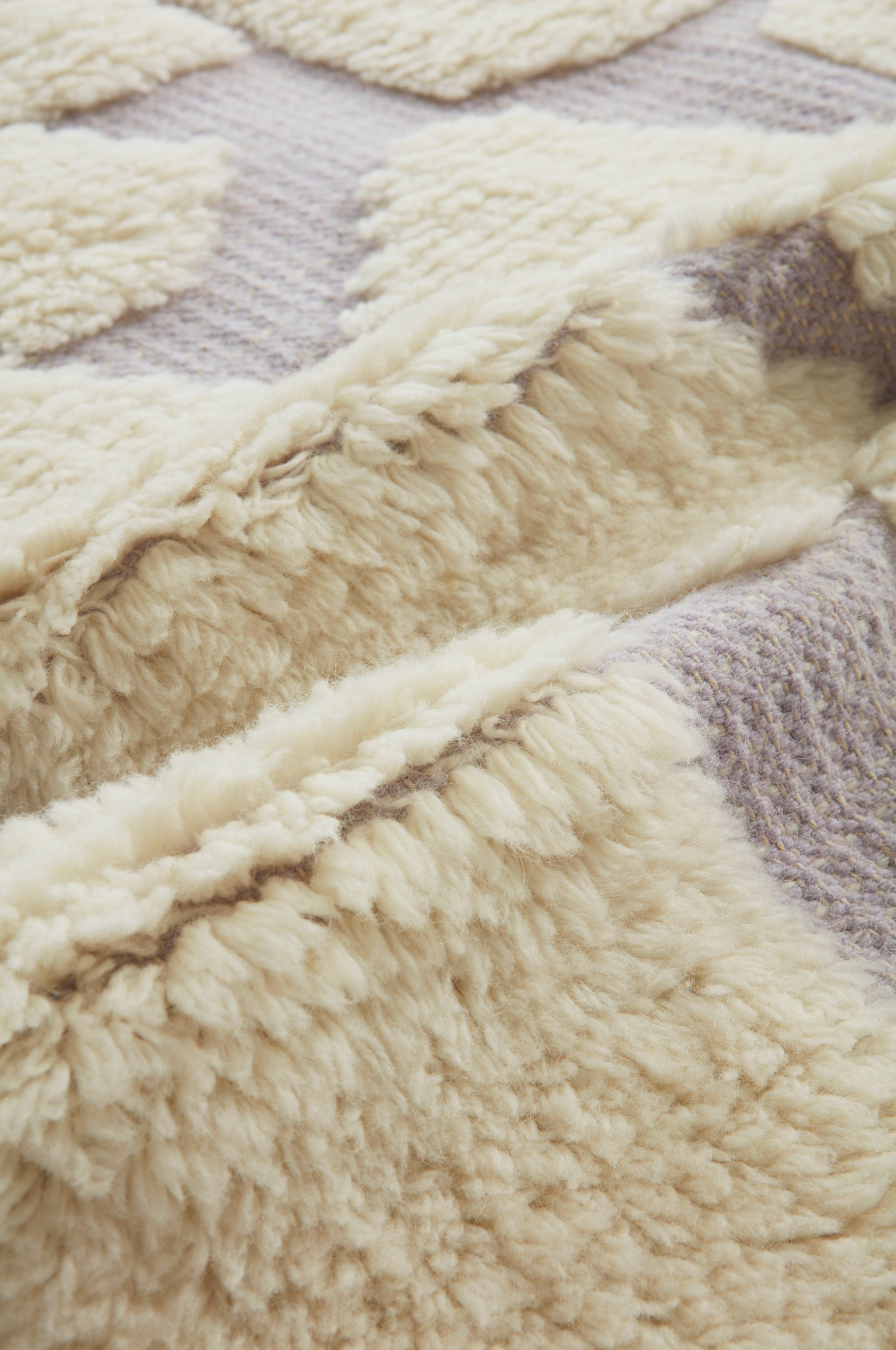 Handtuftad matta av ull med inslag av bomull. Mönstret har skapats av ljus, mjuk lugg på färgad, vävd botten. Ull ger en naturligt varm och praktiskt smutsavvisande matta. Lugghöjd 1,8-2 cm. Tjocklek 2-2,2 cm. 1400-1600 g/m².