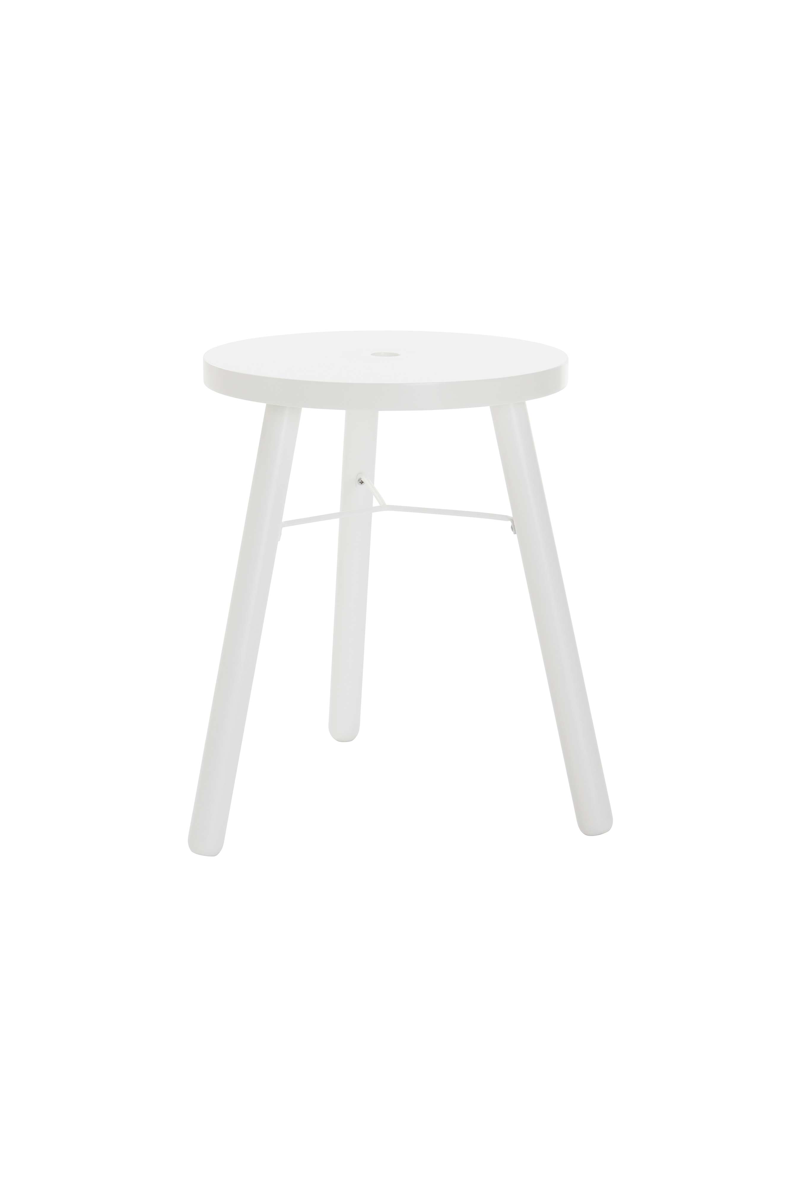 Rund pall med ben av massiv furu och sits av MDF. Den fint målade pallen är i stilren, klassisk modell med skandinaviska influenser. Sitsen har ett dekorativt hål mitt i. Ett metallstag följer med som kan monteras under sitsen mellan benen om så önskas. Viss montering krävs. .