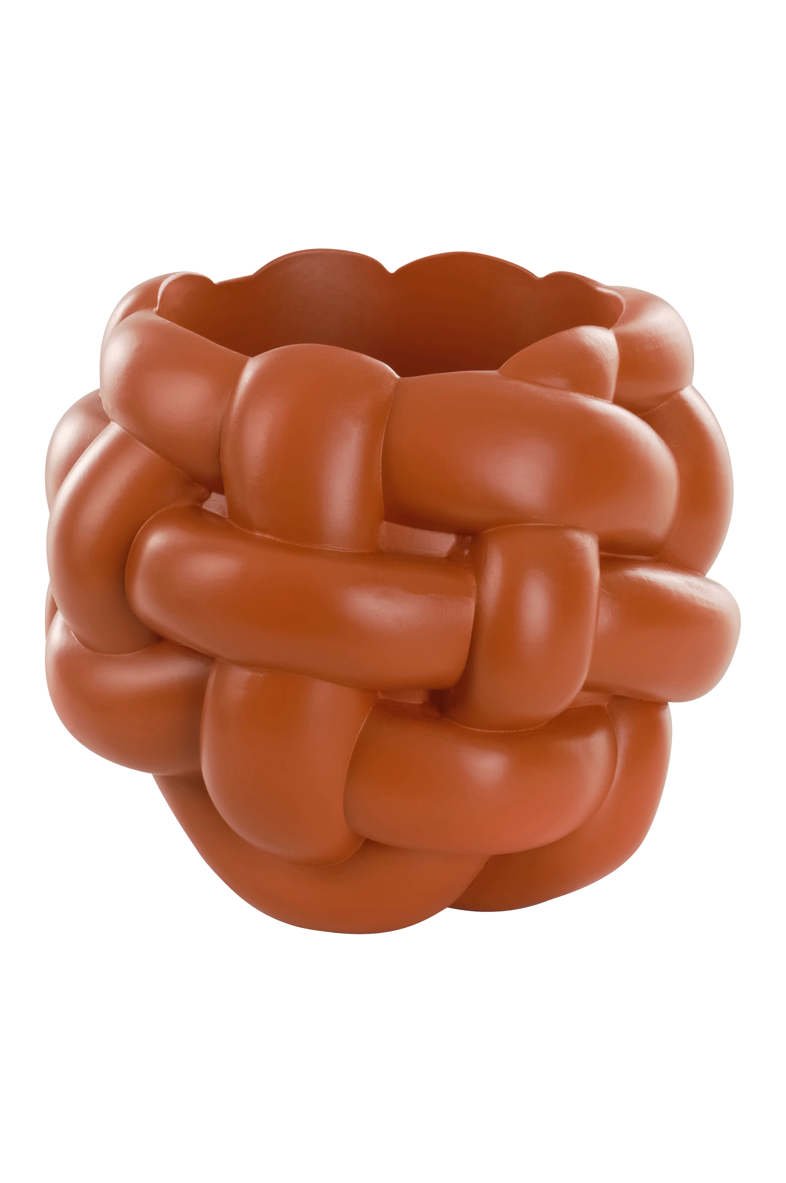 KNOT-krukan har en unik vävd design tillverkad av harts med en oljebaserad färgfinish. Dess intrikata, knutliknande utseende fungerar som en slående fokuspunkt, perfekt för designentusiaster som vill förbättra sitt utrymme med moderna accenter.