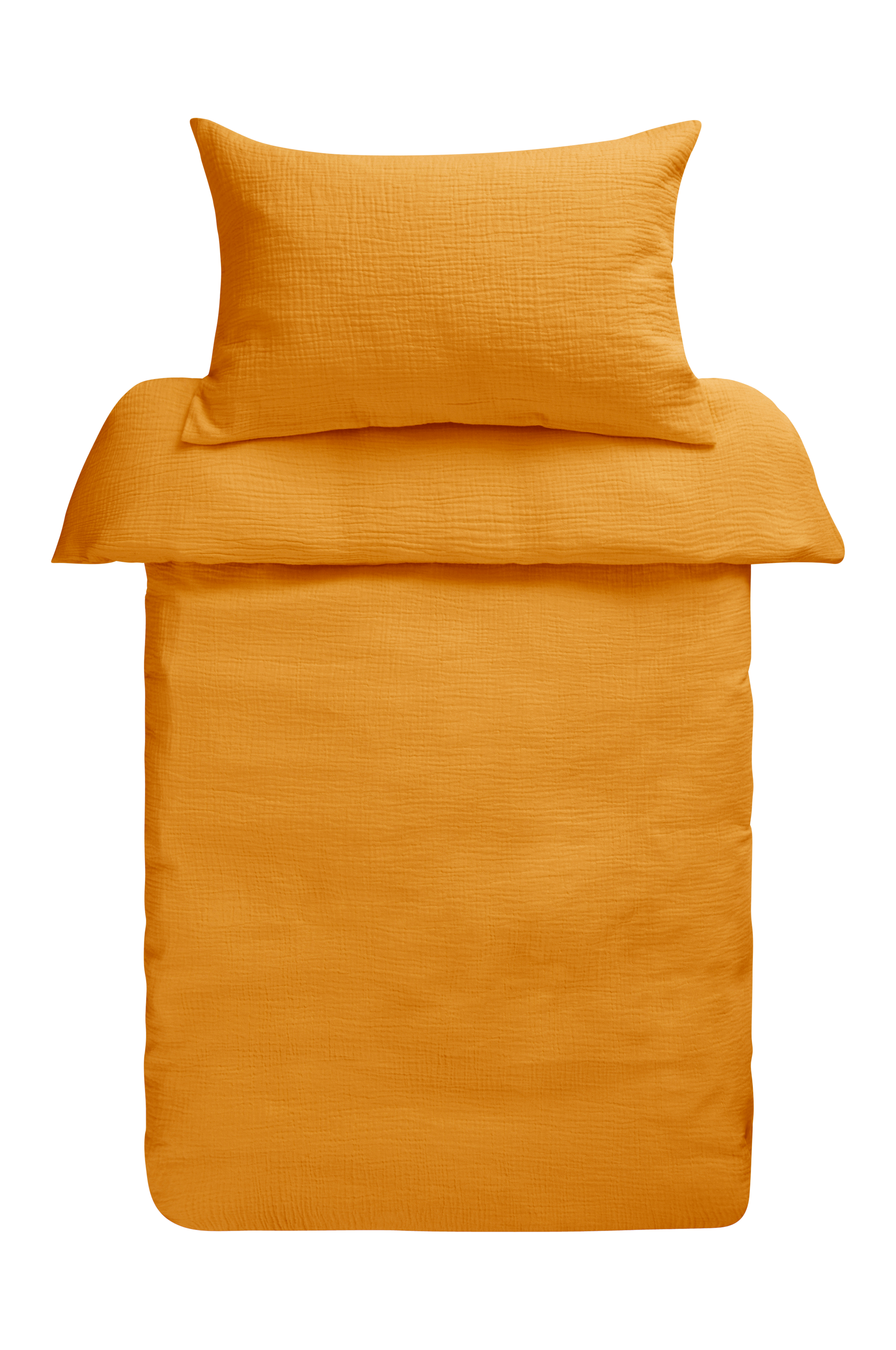 Påslakanset i 2 delar i härlig, ekologisk bomullsmuslin. Setet passar till spjäläng. Muslin är ett mjukt tyg, vävt med bubblig effekt, vilket gör tyget mjukt och extra lättskött. Du behöver inte stryka eller mangla. Det behagliga muslintyget är skönt att sova i. Öppning i övre hörnen på påslakanet, som underlättar att trä påslakanet över täcket. Trådtäthet på 178 tc. (Trådtätheten talar om antalet trådar, thread counts, per kvadrattum i ett tyg. Ju högre trådtäthet desto högre kvalité.)