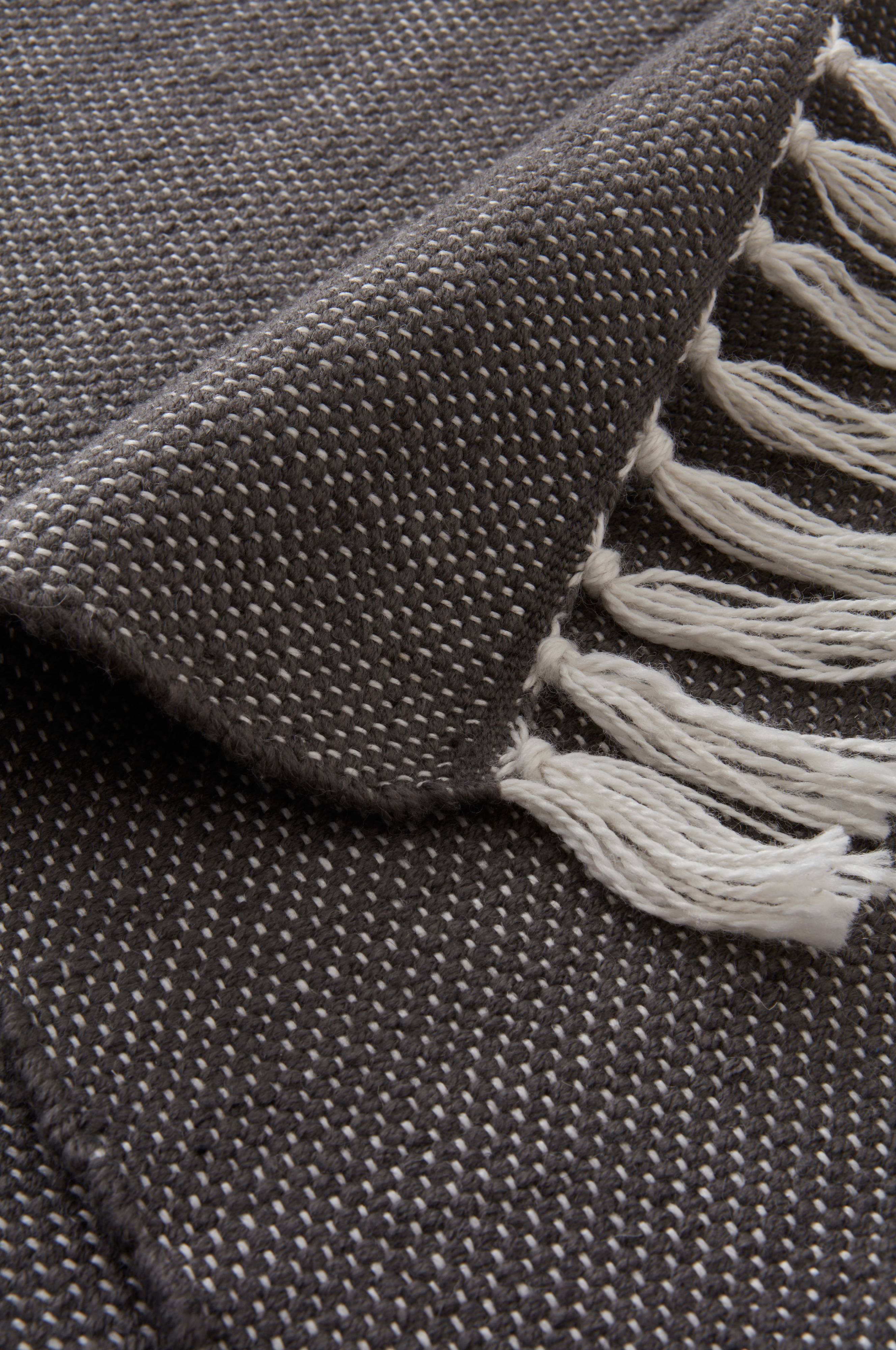 Slätvävd matta som är handvävd av polyester. Mattan är behaglig att gå på och har alla egenskaper som en inomhusmatta ska ha, men kan även användas utomhus. Den tål att bli blöt utan att mögla, en fantastisk fördel hos materialet. Franslängd 7-8 cm. Tjocklek 0,5 cm. 1300-1400 g/m².