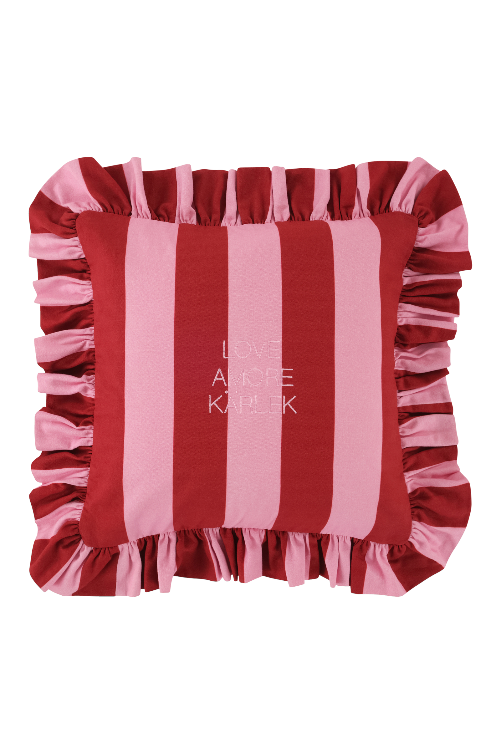 Kuddfodralet LOUD, med sina djärva ränder och lekfulla volanger, tillför dynamisk känsla och livlig närvaro till alla hem. Det är ett karismatiskt val för trendiga inredningsentusiaster som vill tillföra personlighet och stil till sitt utrymme.