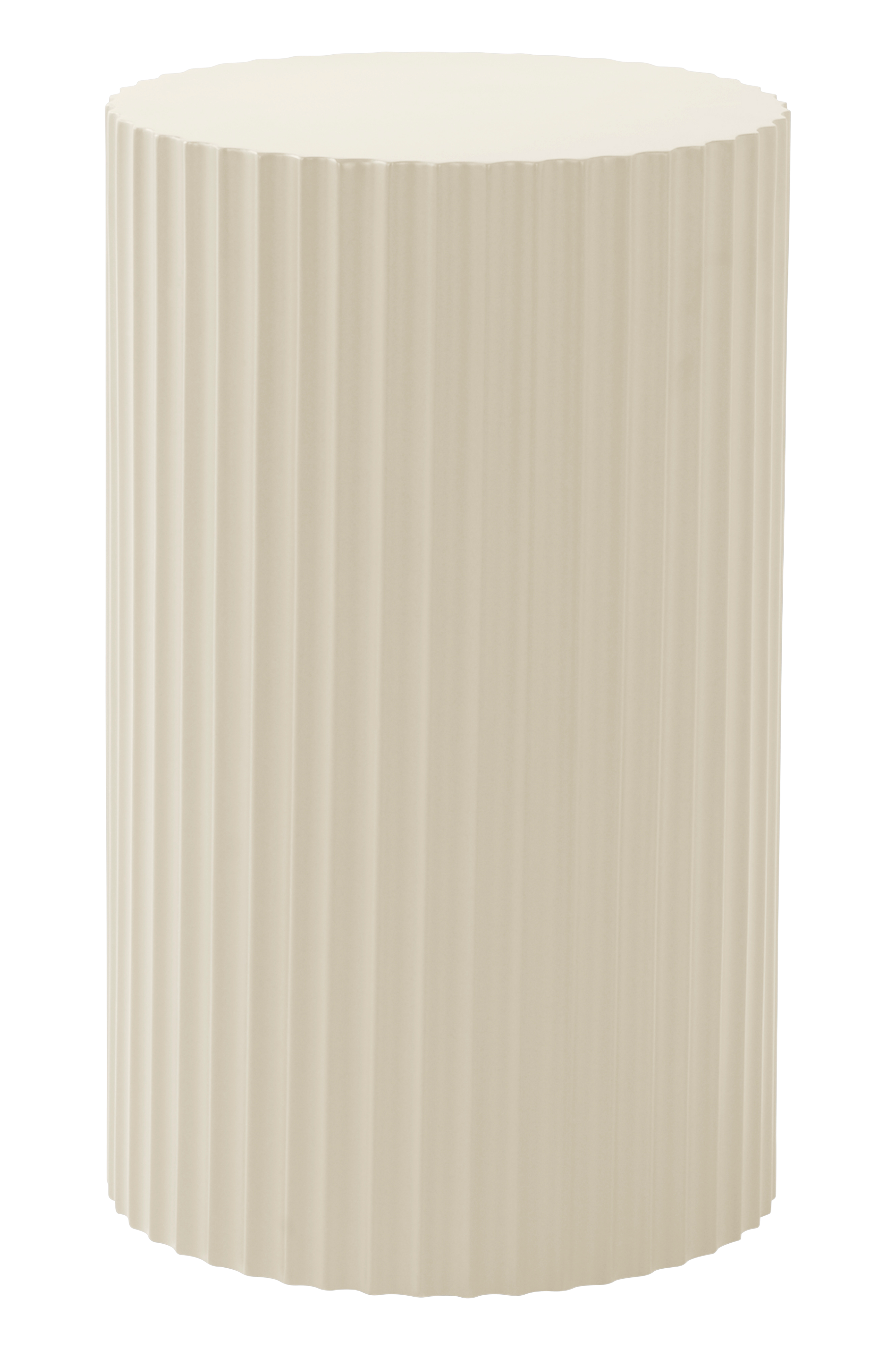 Runt sidobord av FSC-märkt MDF som lackerats med matt färg. Bordsskivan är slät medan sidan är räfflad runt om hela bordet. Bordet är lite lägre och gör sig fint vid soffan eller som sängbord.