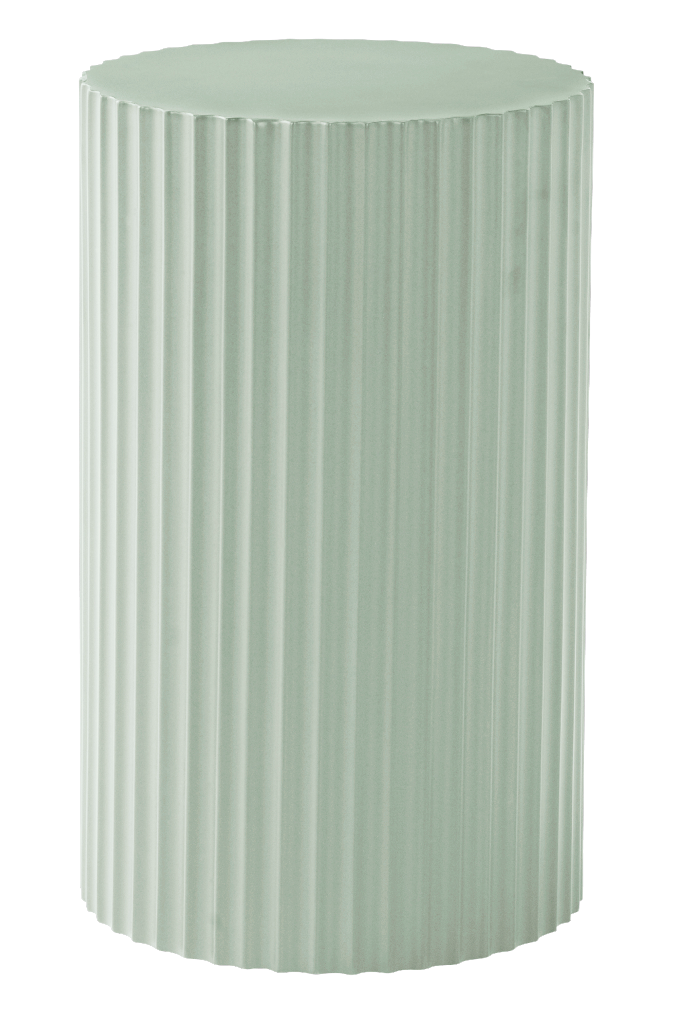 Runt sidobord av FSC-märkt MDF som lackerats med matt färg. Bordsskivan är slät medan sidan är räfflad runt om hela bordet. Bordet är lite lägre och gör sig fint vid soffan eller som sängbord.