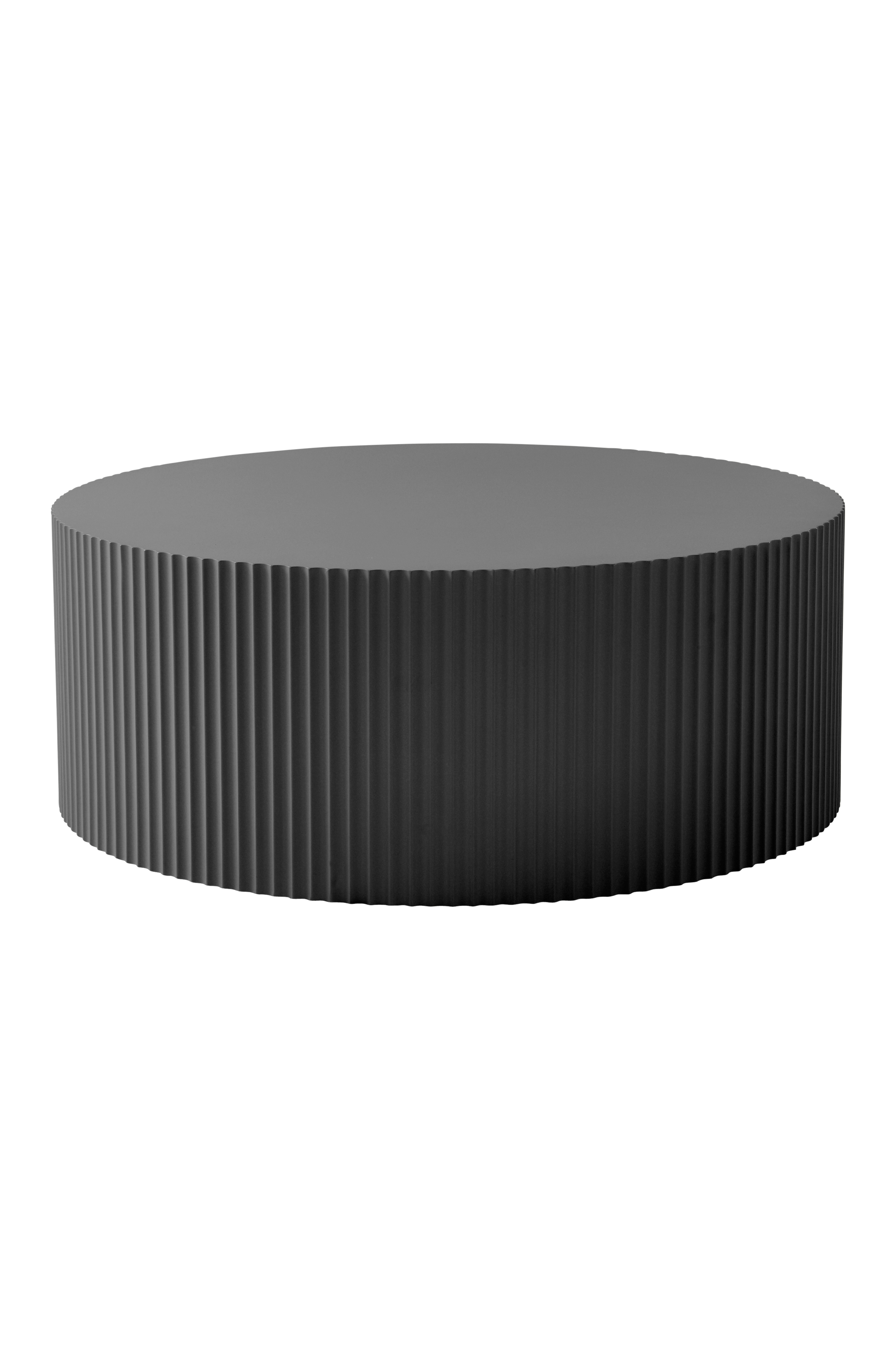 Runt soffbord av FSC-märkt MDF som lackerats med matt färg. Bordsskivan är slät medan sidan är räfflad runt om hela bordet.