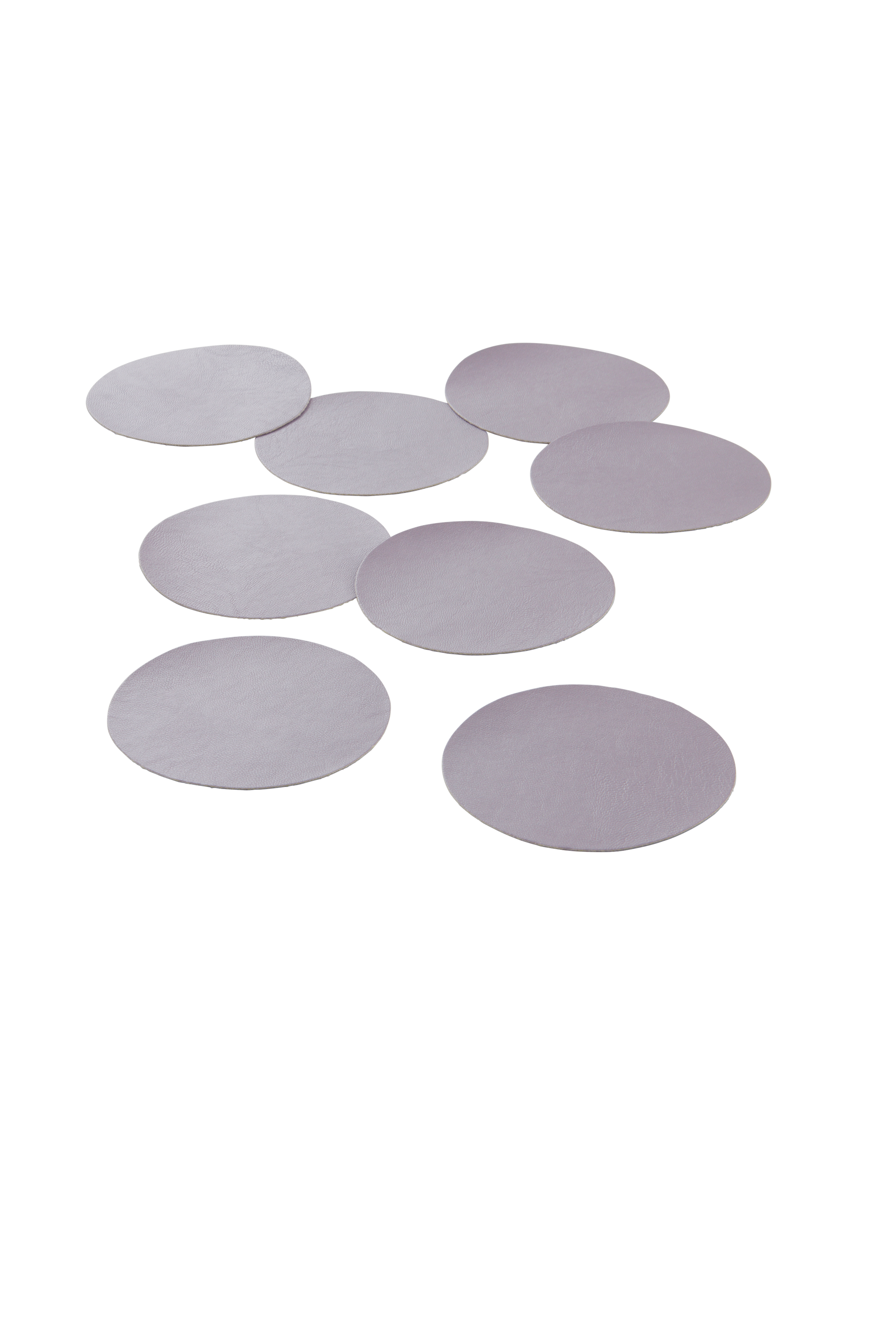 8-pack glasunderlägg i konstläder av polyuretan. De runda glasunderläggen ger en genomtänkt dukning och de skyddar bordet från fläckar av både vätska och värme samtidigt som glasen sätts ner tystare.