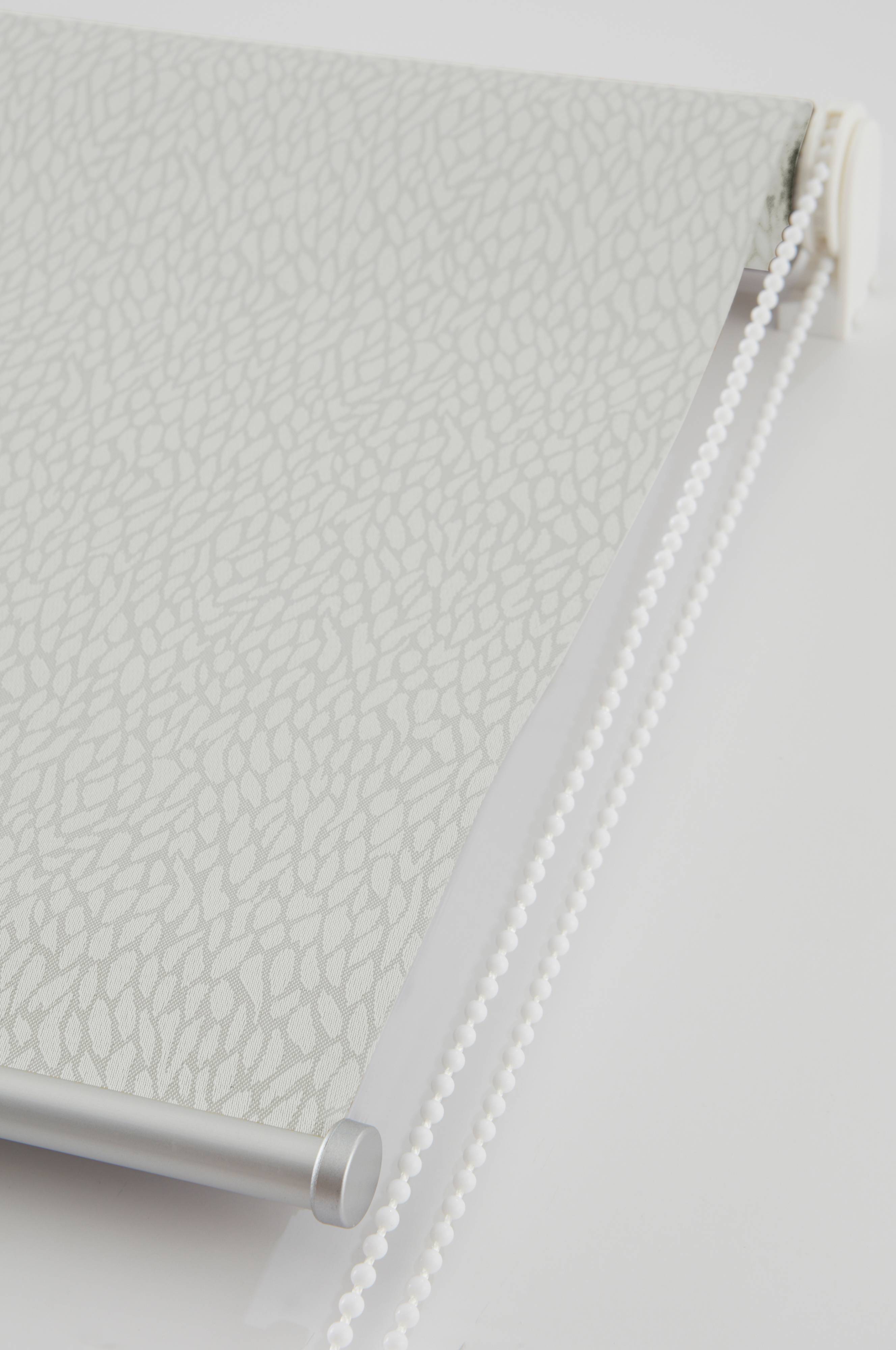 Mörkläggande solskyddsgardin (funktionsgardin) av polyester, hälften kommer från återvunnet material. Tyget blockerar ut ljuset och mörklägger sovrummet, tv-rummet eller barnkammaren. Rullgardinen har diskret mönster ton i ton. Ljusblockerande beläggning på baksidan. Rullgardinen hissas upp och ned med hjälp av en liten kulkedja vid sidan. Fästen ingår. Enkel att montera. Monteringsanvisning medföljer.