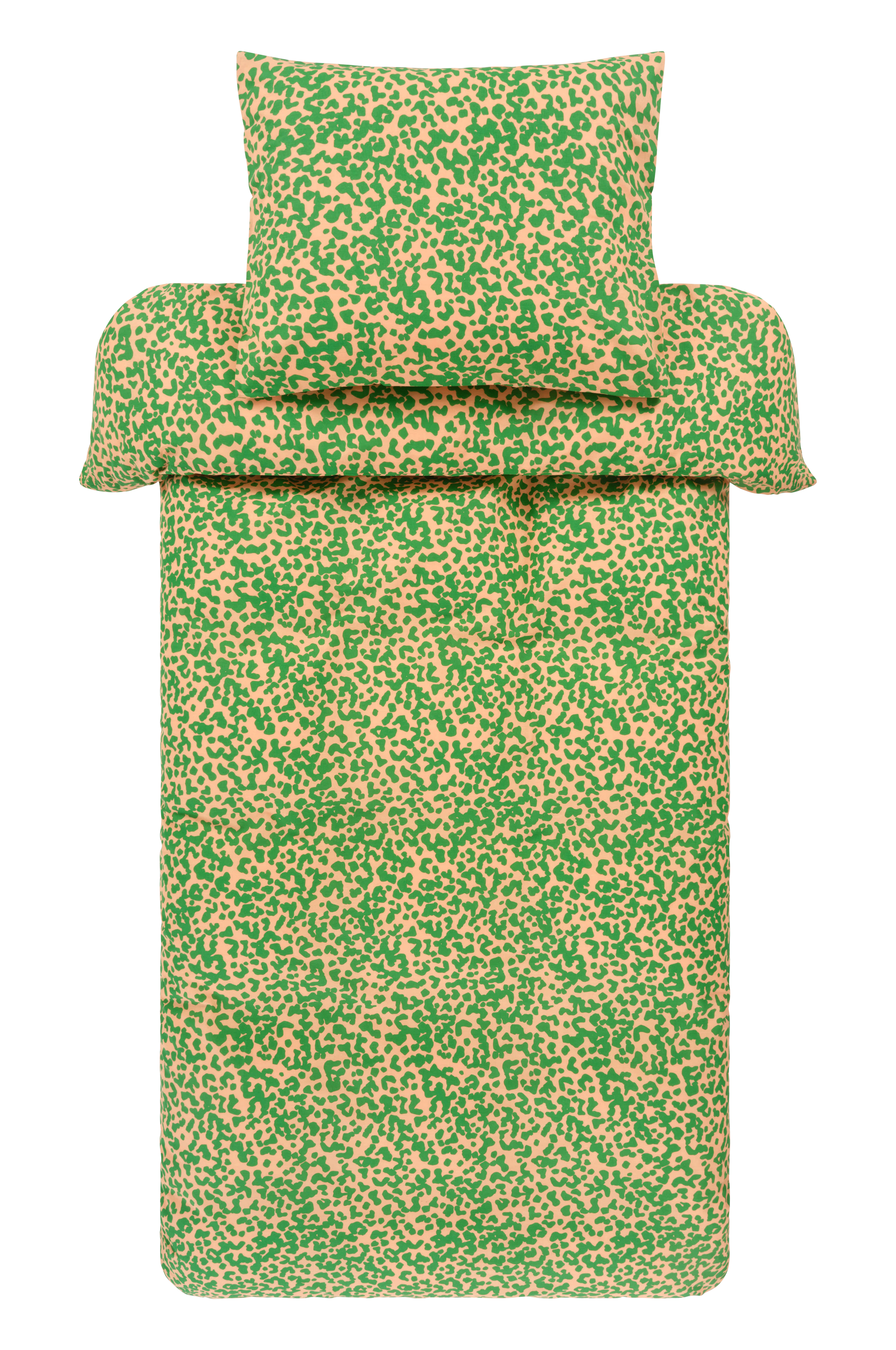 MALIA enkelsängsset ger retrokänsla med ett livligt leopardmönster av Maria Carlberg, med örngott och påslakan i ekologisk bomull. MALIA är perfekt för trendig design och erbjuder matchande produkter för att komplettera din inredningsvision med retrochic.