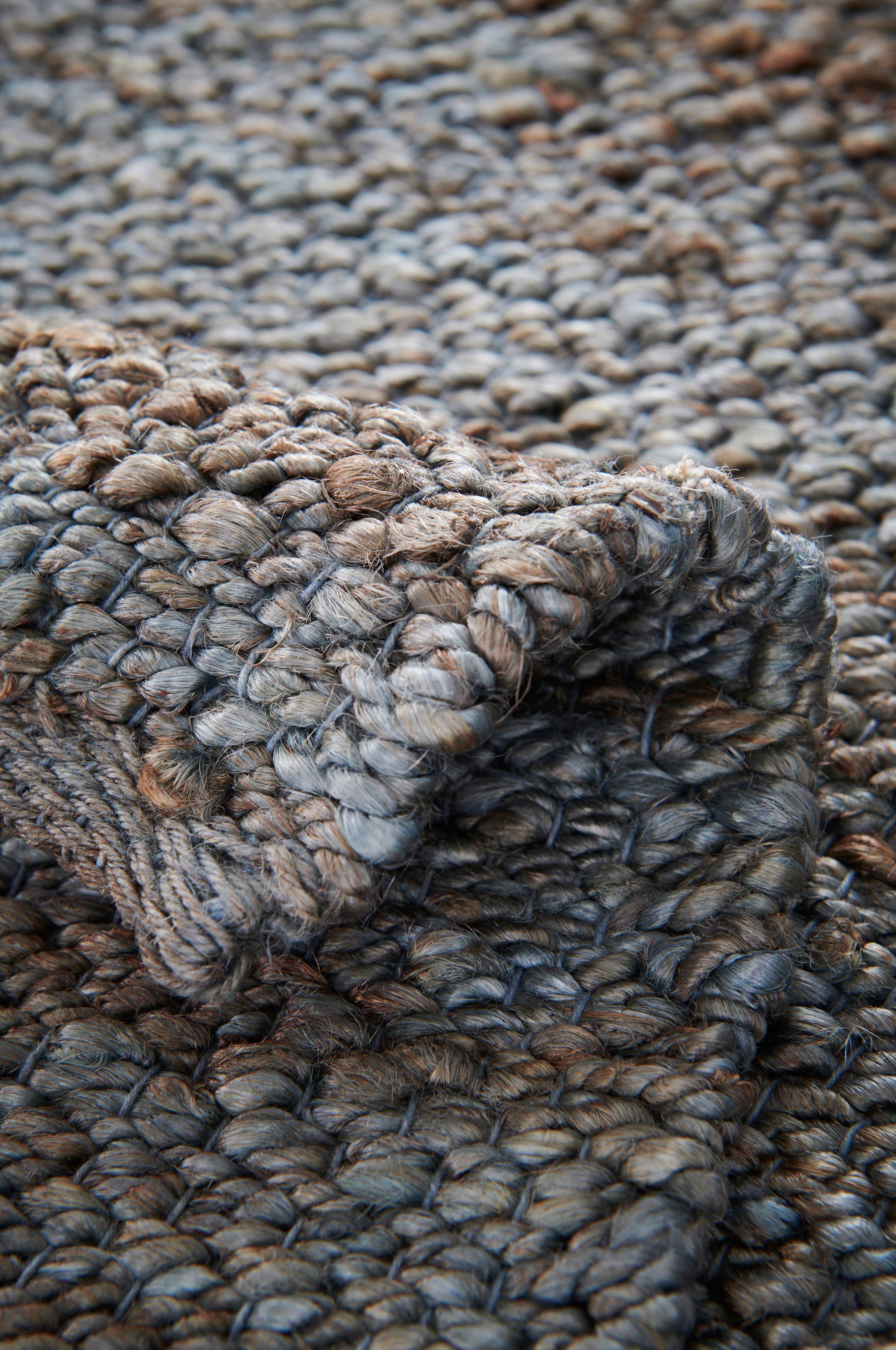 Handvävd jutematta med naturlig, rustik känsla. Jutegarnet är infärgat i vackra nyanser som ger en melerad effekt. Tjocklek: 8-10 mm. 2500-2600 g/m².