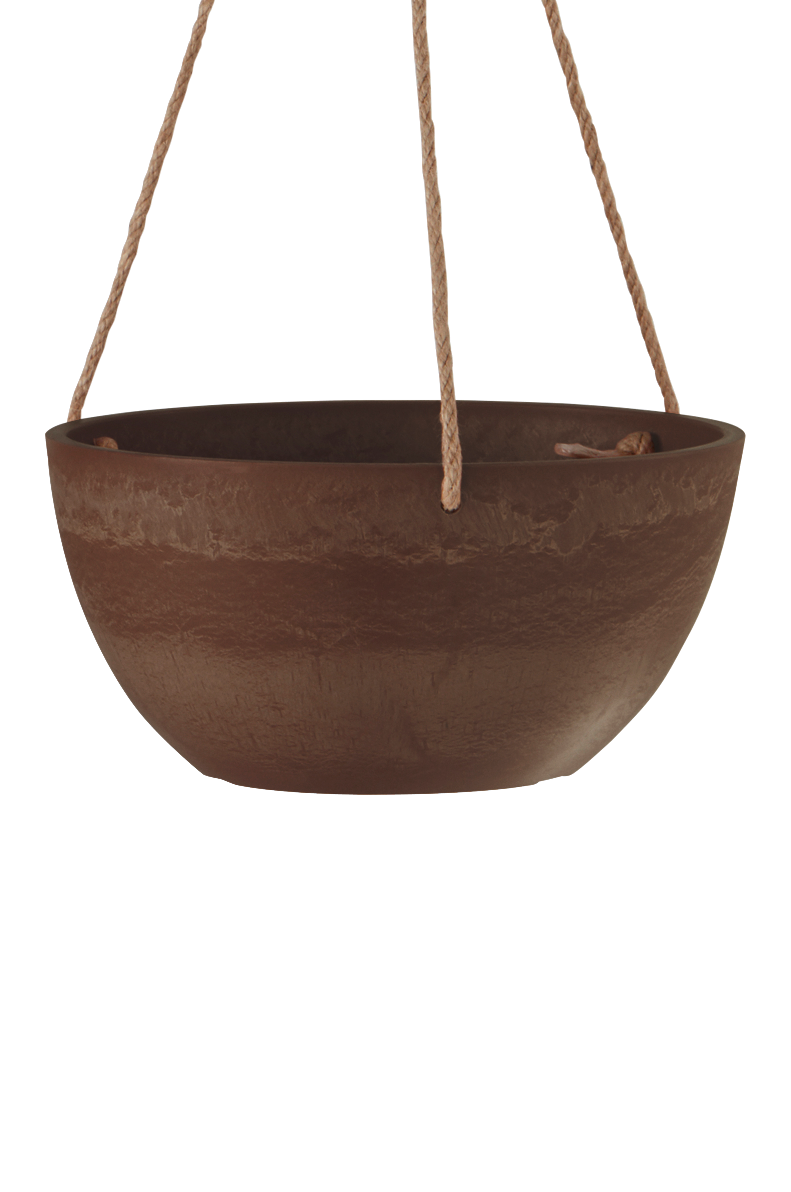 Ampelkrukan har snören för upphängning. Snöret är tillverkat av jute, som är ett naturmaterial. Jute påverkas av sol och vatten och bryts ner med tiden.