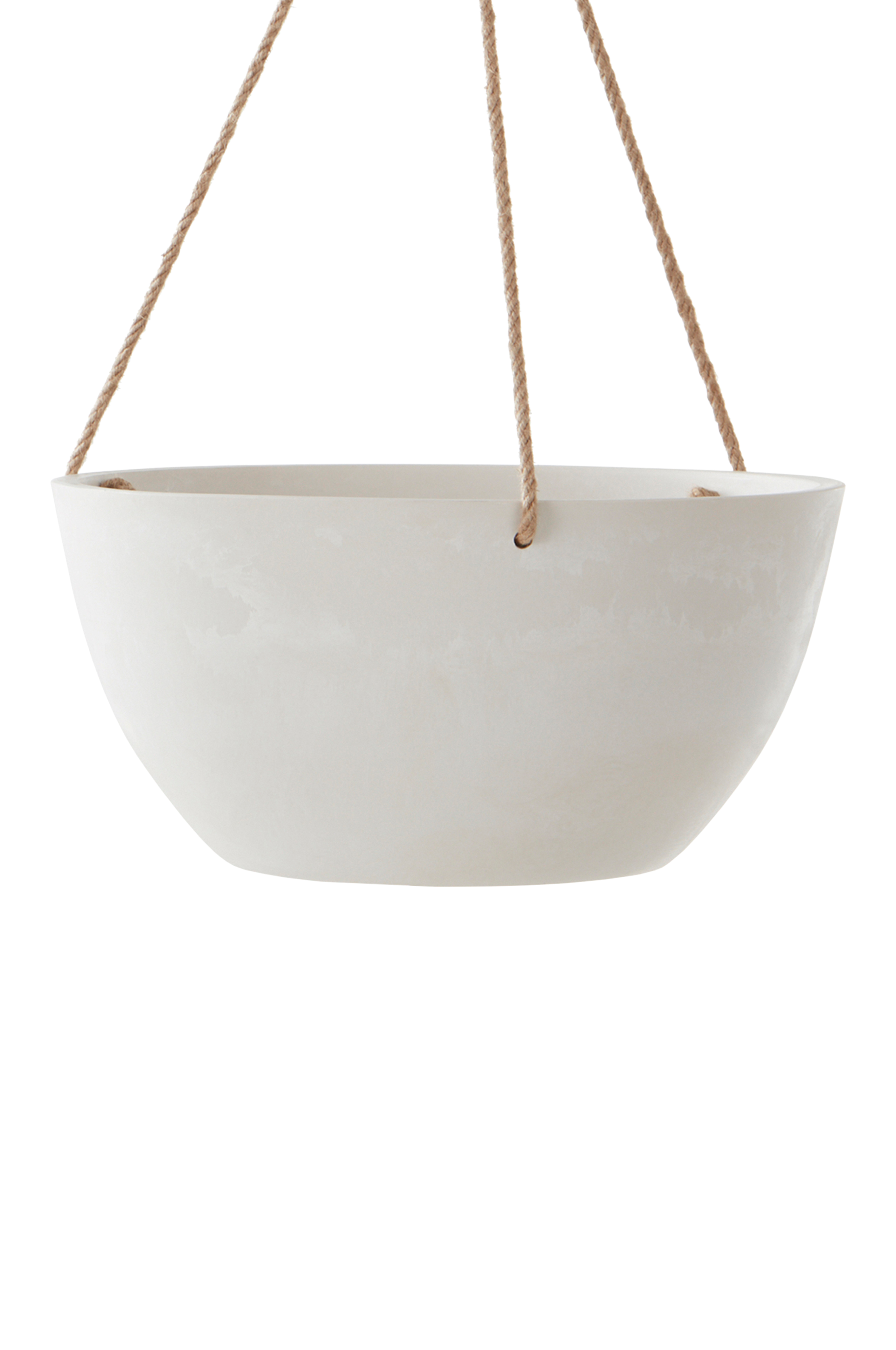 Ampelkrukan har snören för upphängning. Snöret är tillverkat av jute, som är ett naturmaterial. Jute påverkas av sol och vatten och bryts ner med tiden.