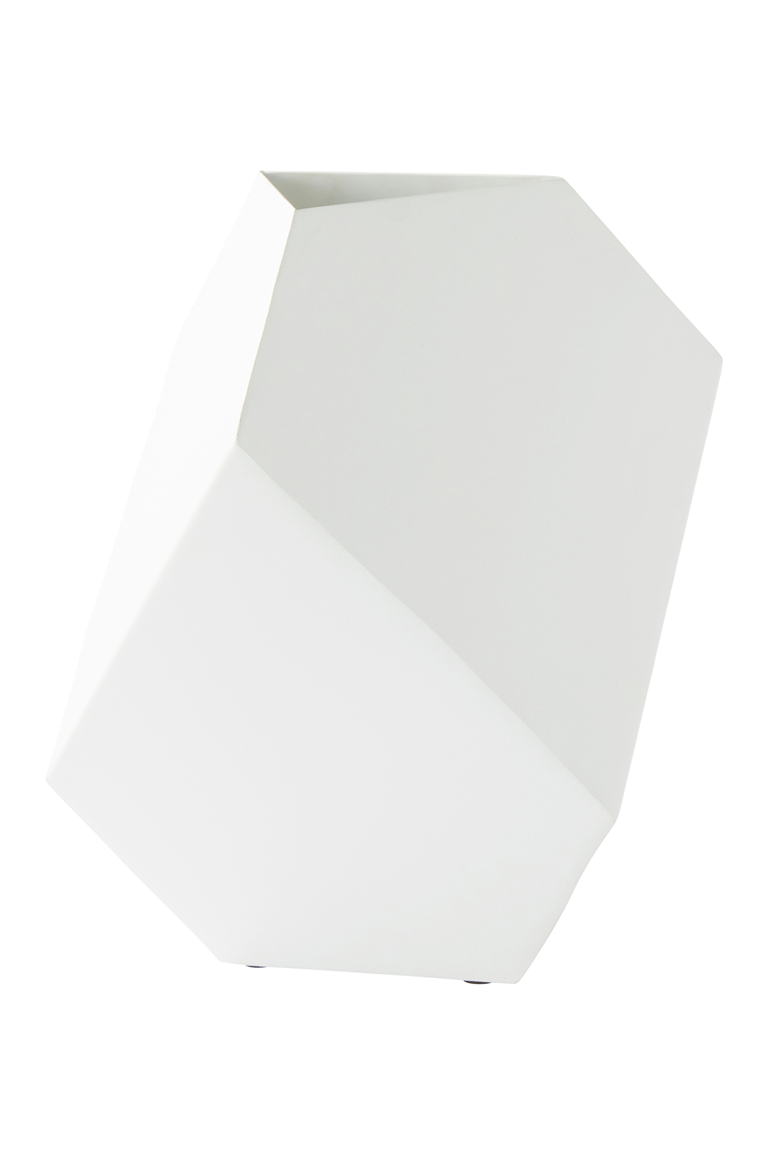 En geometrisk formad vas i matt lackad metall, som du kan ha som den är eller så fyller du den med fina växter.