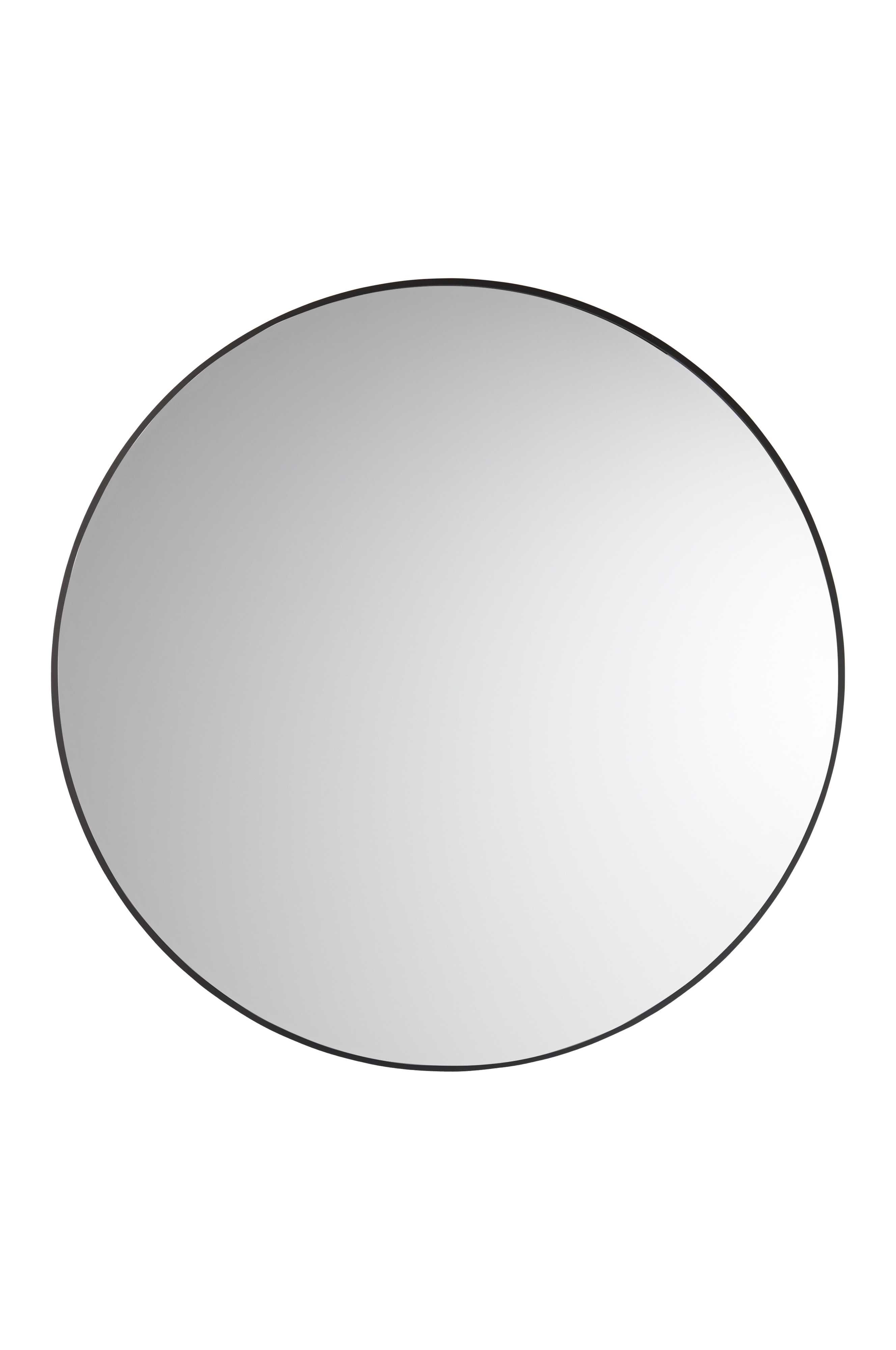 Rund spegel med smäcker aluminiumram. Baksidan är av MDF. Dold hängare på baksidan.