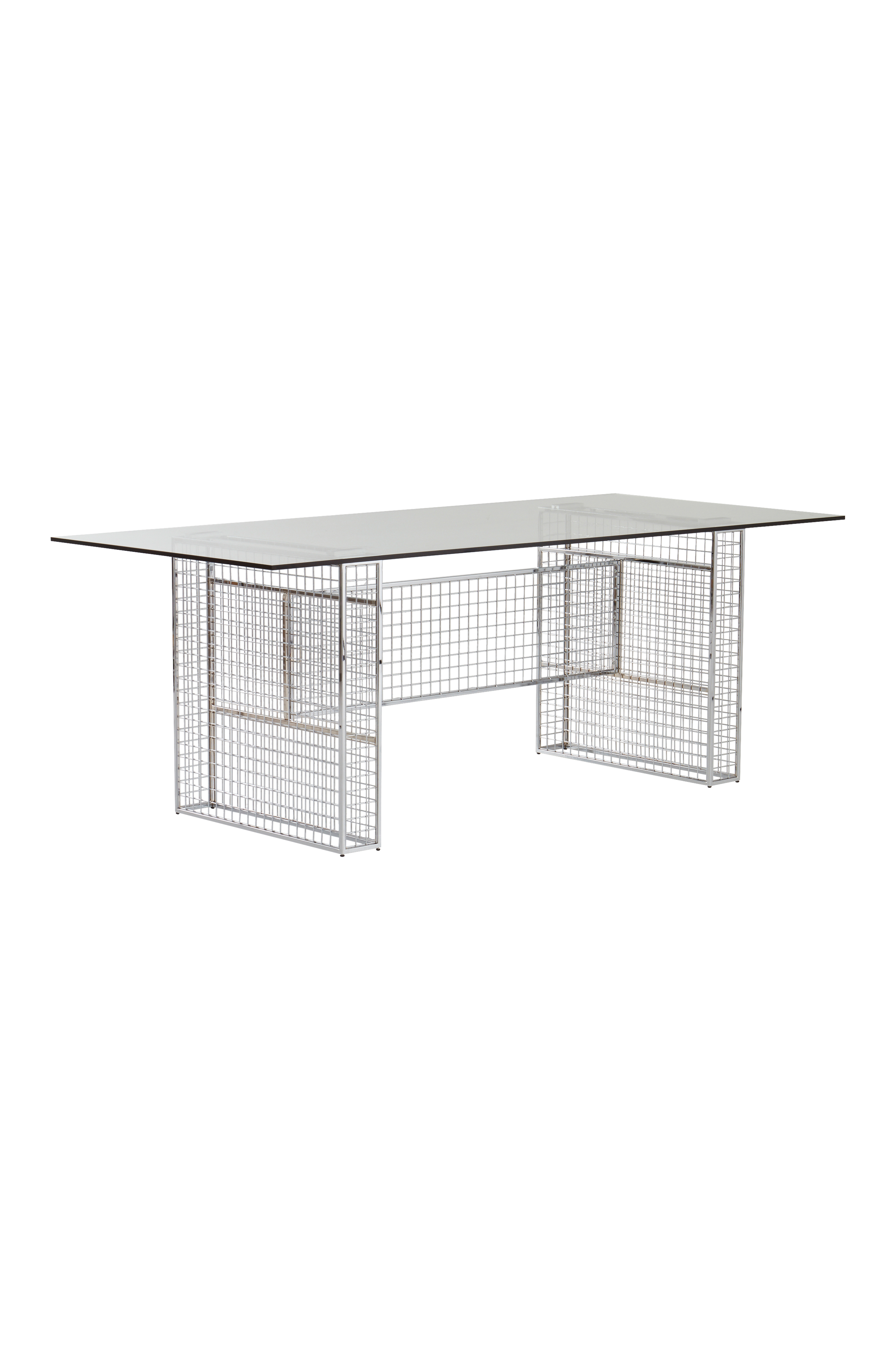 Matbord i snygg, innovativ modell av järngaller med bordsskiva av glas. Ett snyggt matbord gör varje måltid lite festligare och MEKKO passar både i köket och om du har en speciell matsal. Stommen i bordet är av järn och nät av järnvajer, med kromad finish eller svart lack. Benens höjd kan justeras så bordet står jämnt på ett ojämnt golv. Viss montering krävs. Monteringsanvisning medföljer.