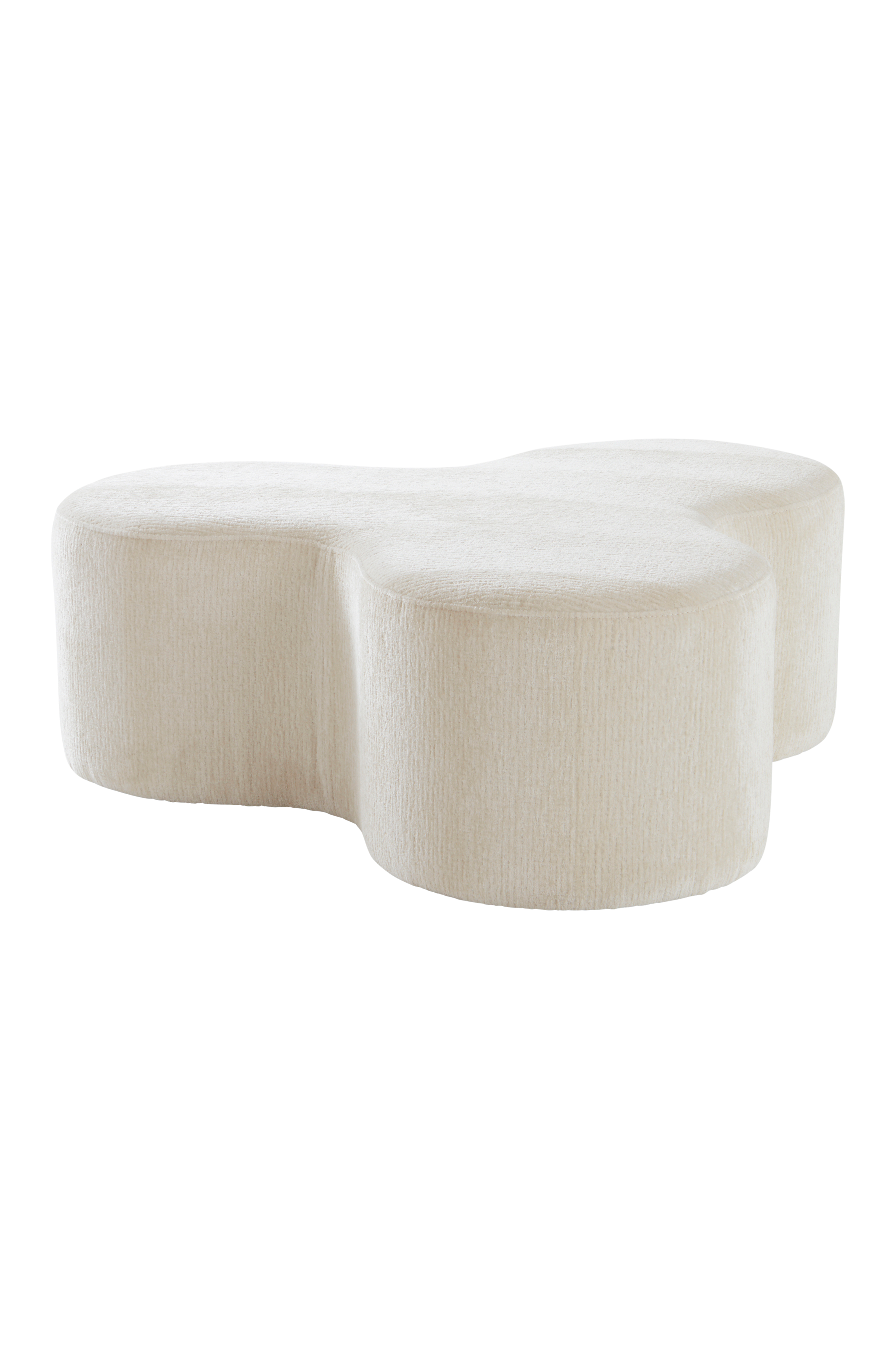 MINTAKA är en läcker sittpuff, kanske du tänker på en treklöver eller en blomma? Formen är speciell och klädseln är minst lika speciell. Den är i ett mjuk chenilletyg med oregelbunden struktur och fin glans. Chenille innebär att tyget är vävmönstrat med inslag av sammetsgarn. Tyget är av återvunnen polyester i härliga färgval och den har slitstyrka på 55000 Martindale.