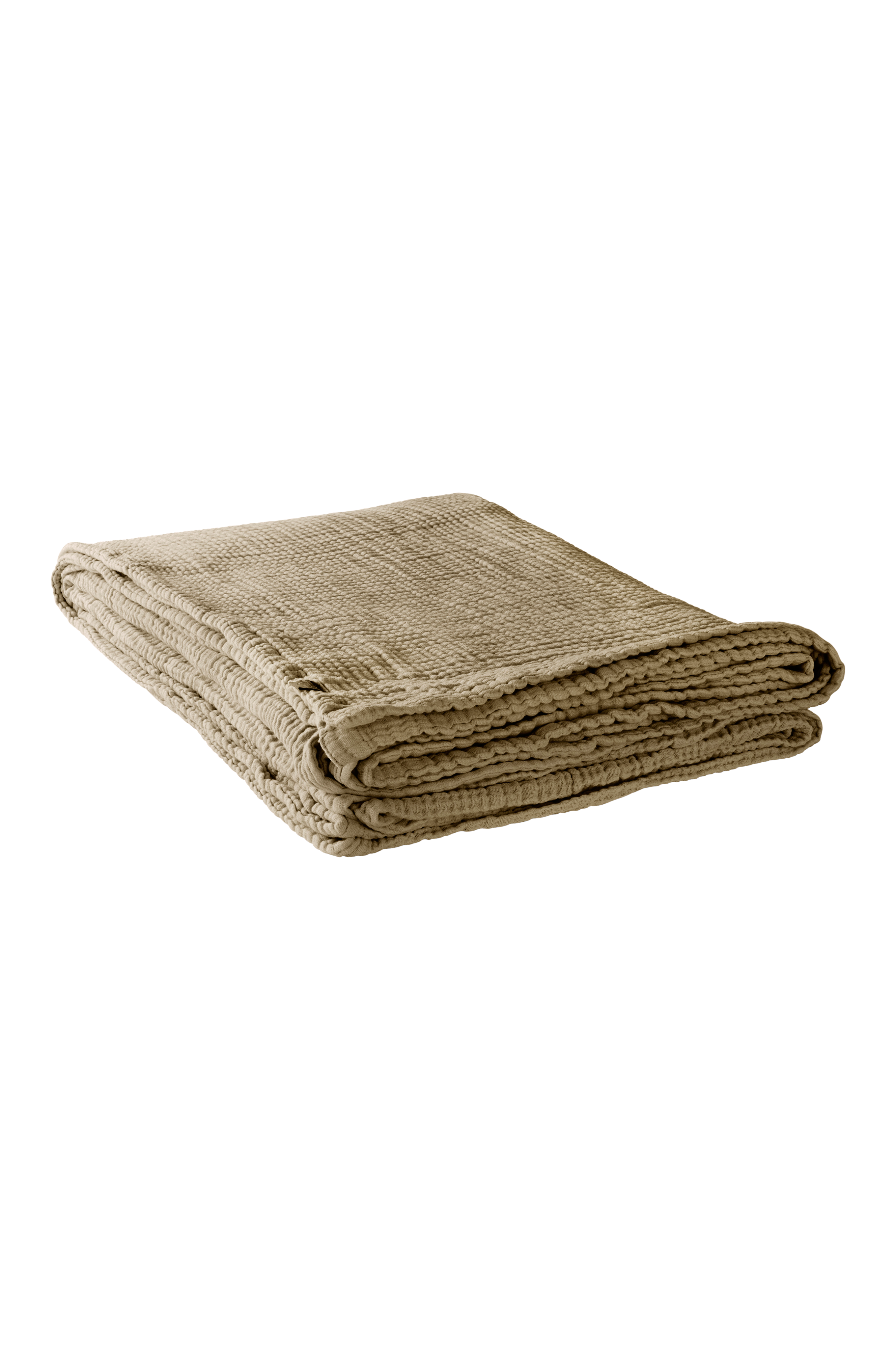 Överkast till dubbelsäng. Överkastet är i härlig bomullsmuslin. Den sköna muslinkvalitén är garnfärgad, kraftig och har stentvättats för att bli härligt mjuk och skön. Söm runt om överkastet skapar en snygg kant, 2 cm bred. Vikt 180 g/m².