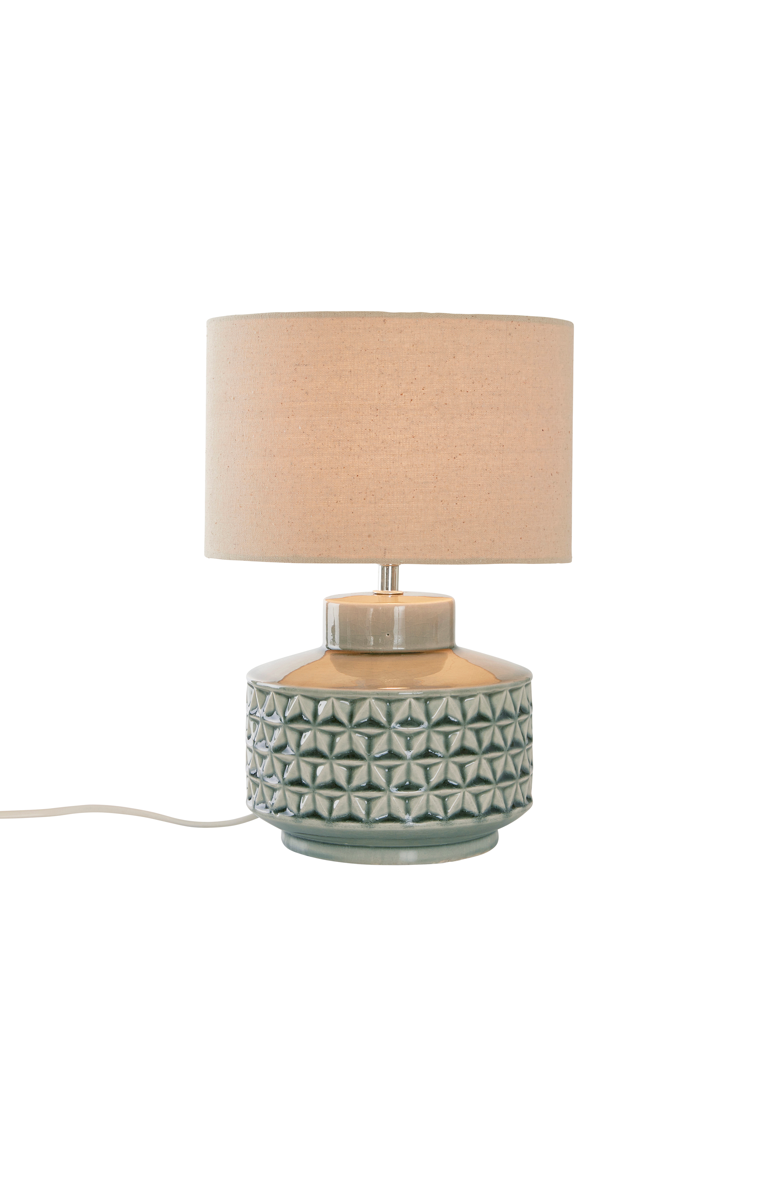 Bordslampa med en mjukt formad keramikfot och tygskärm av lin. Sladdlängd 150 cm.