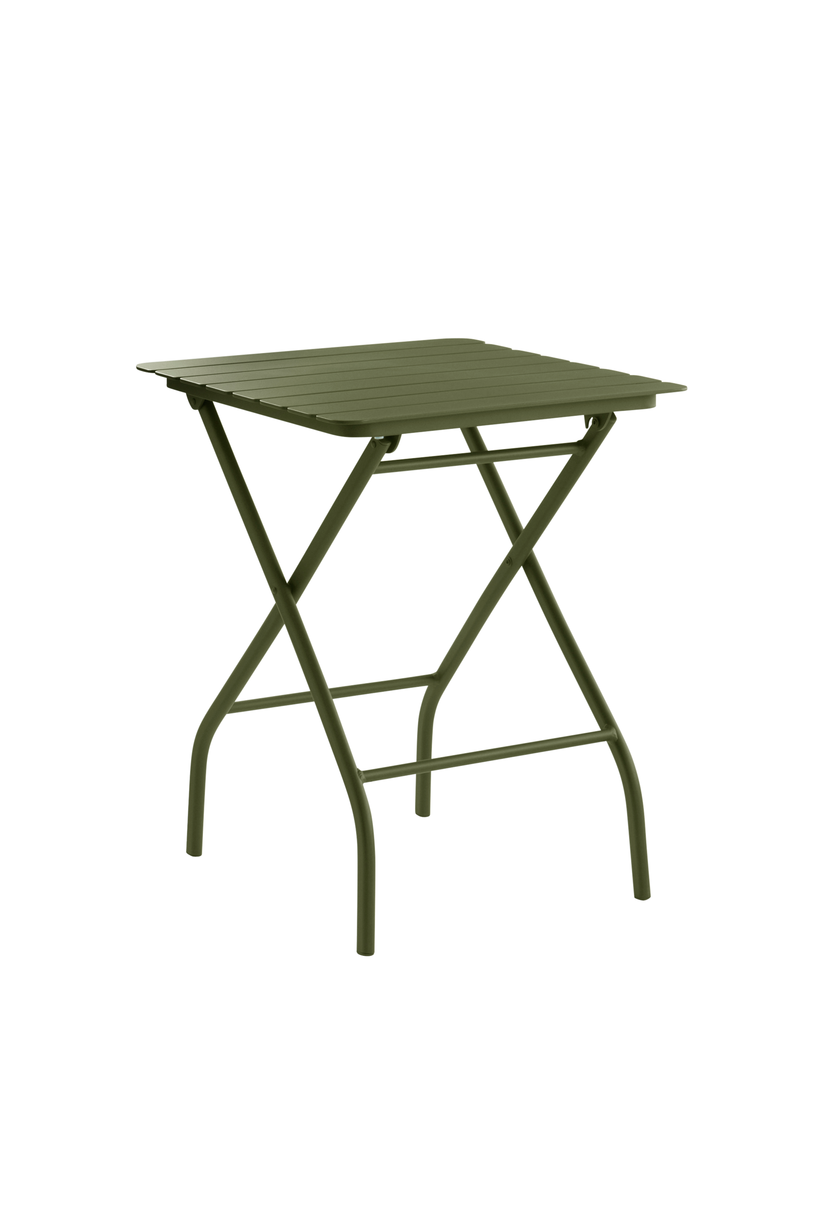 Cafébord av pulverlackerad aluminium med matt yta som inte bländar i solskenet. Ett smidigt litet bord som andas trädgårdsromanitk. Hopfällbar modell, praktiskt vid vinterförvaring och om du har liten balkong. MONTMARTRE tål att förvaras utomhus, aluminium rostar inte. Låg vikt.