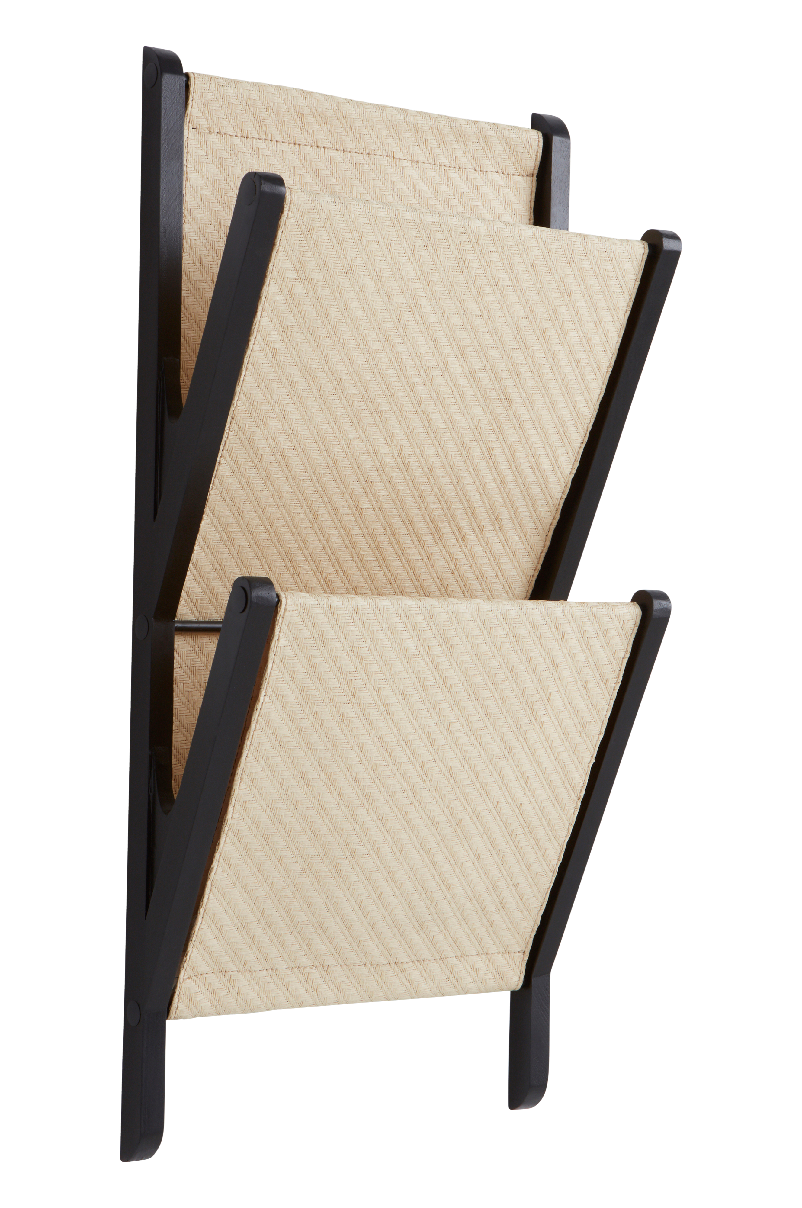MORGAN är en tidningshylla av bambuträ och rotting, som du hänger på väggen. Ramen i bambu är mattssvart, facken och ryggen är i naturlig, obehandlad rotting.