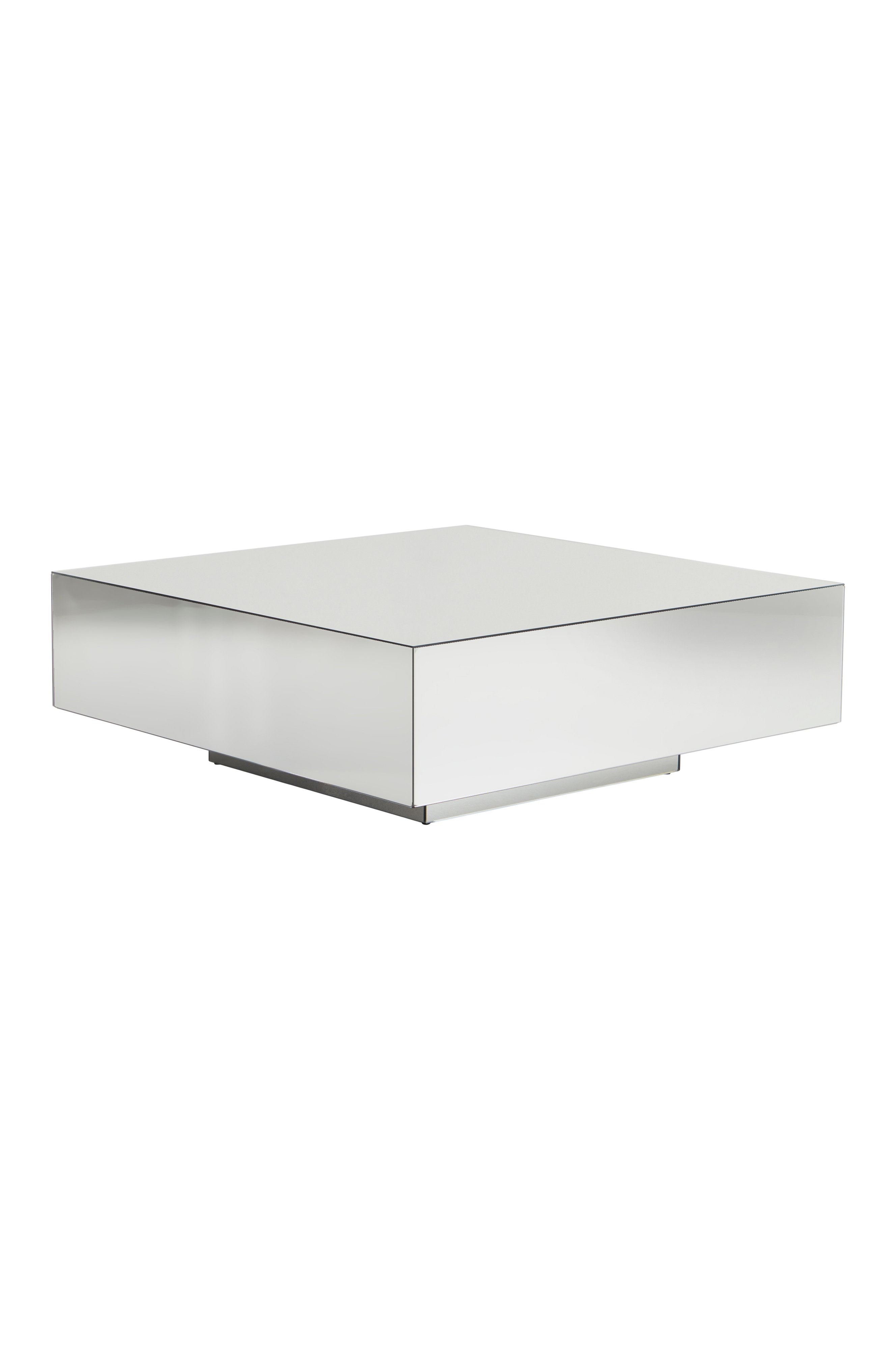 Soffbord av spegelglas med stomme av FSC-märkt MDF. Spegelbordet ger spännande effekter och kanterna har en svart sofistikerad fog. Bordet har en liten sockel av glas som ger det en svävande känsla.