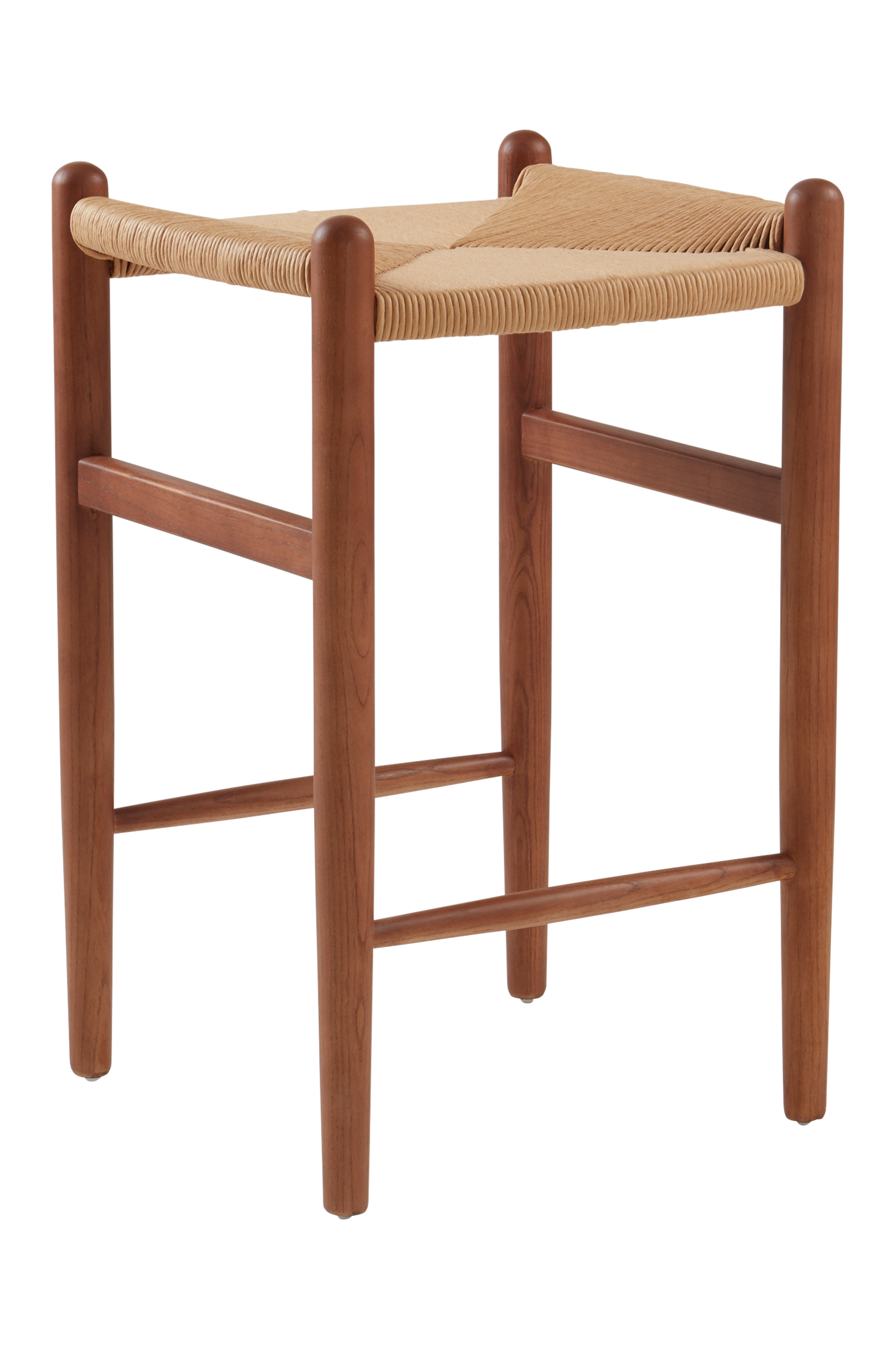Barpall i massivt trä med sits av papperssnöre som blir en vacker kontrast till trät och samtidigt ger bra sittkomfort. Vitsåpad och valnötsfinish är av alm. Matt svart och ljust trä är av björk.