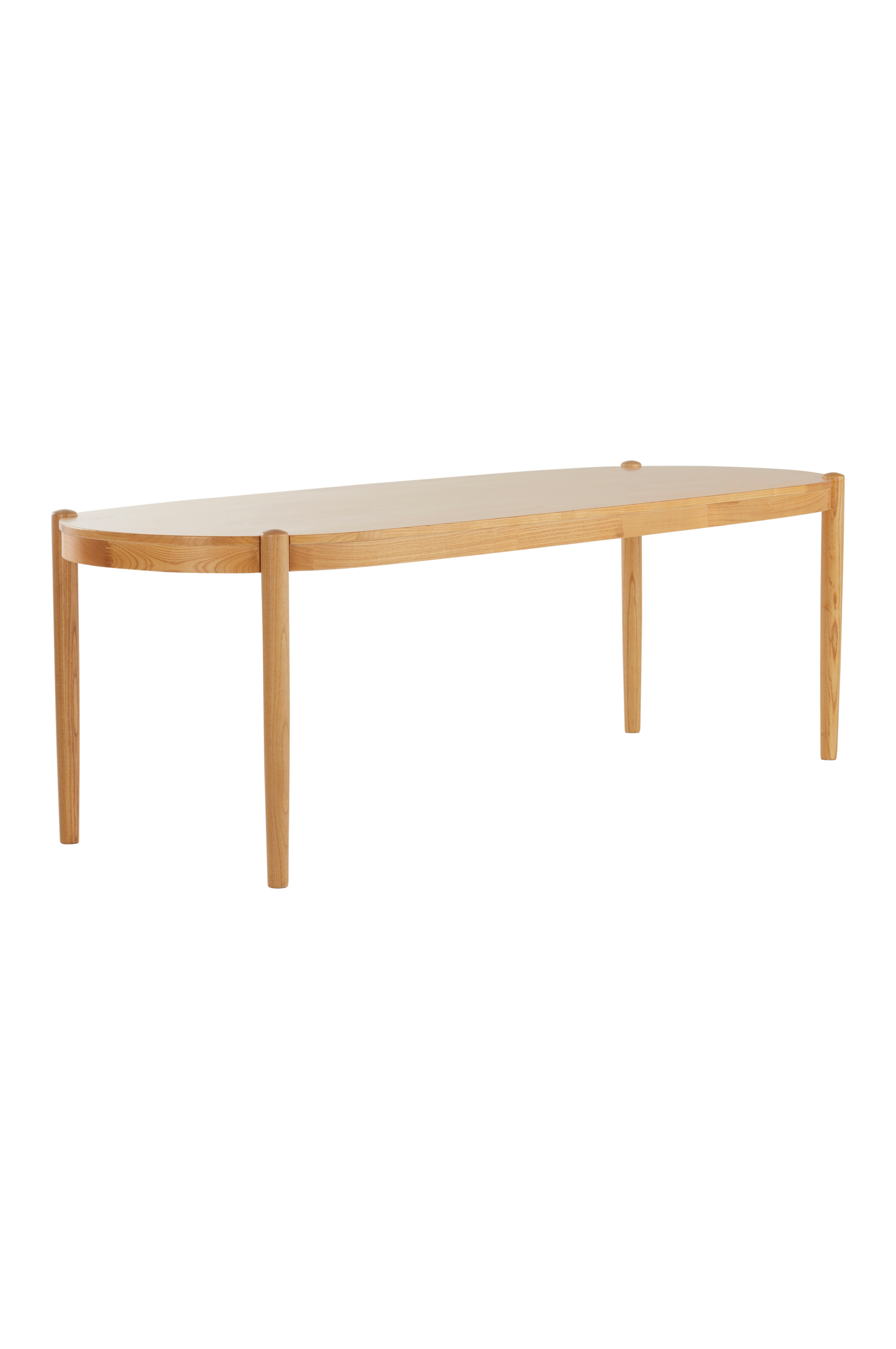 Matbordet är av almträ och bordsskivan har fått almfaner på toppen. Matbordet är ovalt i formen och benen som placerats i ytterkant och samtidigt infällda i bordsskivan ger bordet sin fina karaktär. Placeringen av benen gör det enkelt att sitta många vid bordet. Bordet finns med flera olika, vackra ytbehandlingar, välj den färg som passar bäst hemma hos dig.