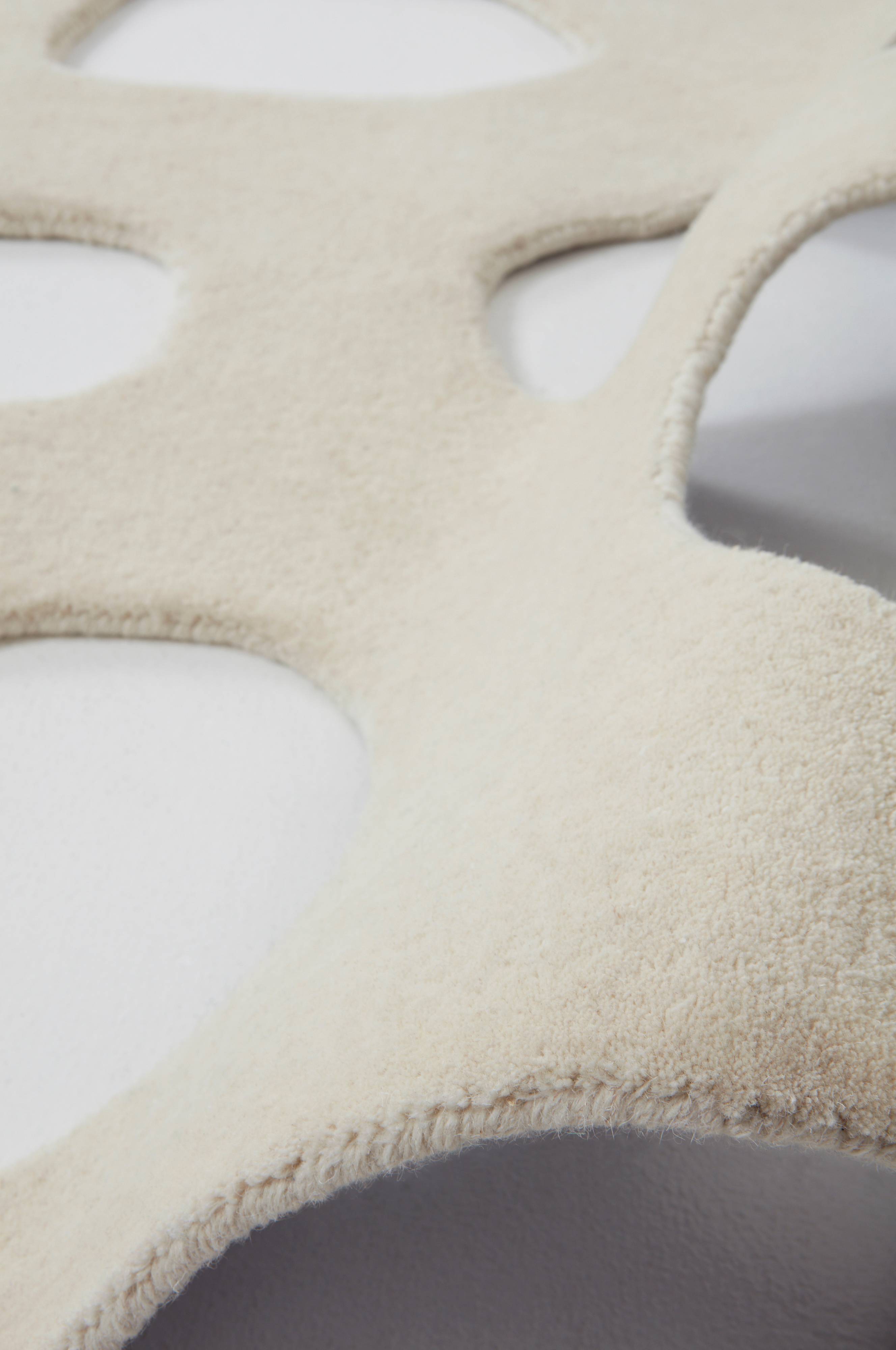 Handtuftad, kraftig ullmatta med kort tät lugg. Mattan är enfärgad och rektangulär med oregelbundna, fint kantade håligheter som visar golvet genom mattan. NELUMBO är en ny, innovativ matta som allt som oftast får uppmärksamheten och den ger ditt rum en fräsch futuristisk känsla. Somliga kallar detta ostmatta vilket är ett ganska målande smeknamn. Lugghöjd 1-1,1 cm. Tjocklek 1,4-1,5 cm. 3600-3800 g/m².