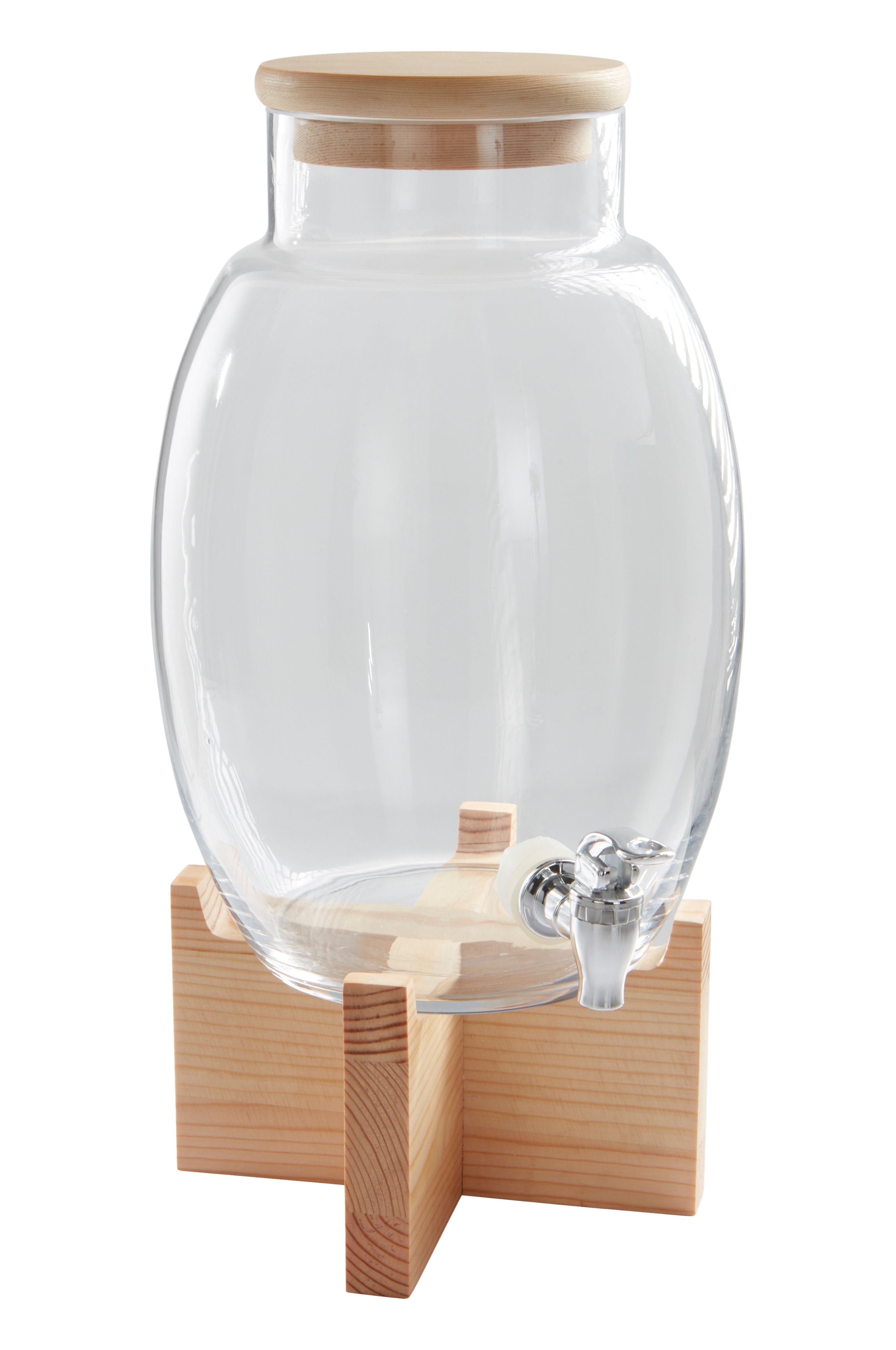 Glasbehållare med tappkran, perfekt för härliga fester både inomhus och utomhus. NOVIA är i klarglas och har ett lock av trä och tappkran som är av plast. Dessutom har behållaren en ställning av trä som gör att den står stabilare och kommer upp lite från bordet vilket kan förenkla serveringen. Behållaren kan förvaras i kylskåp med dryck i.