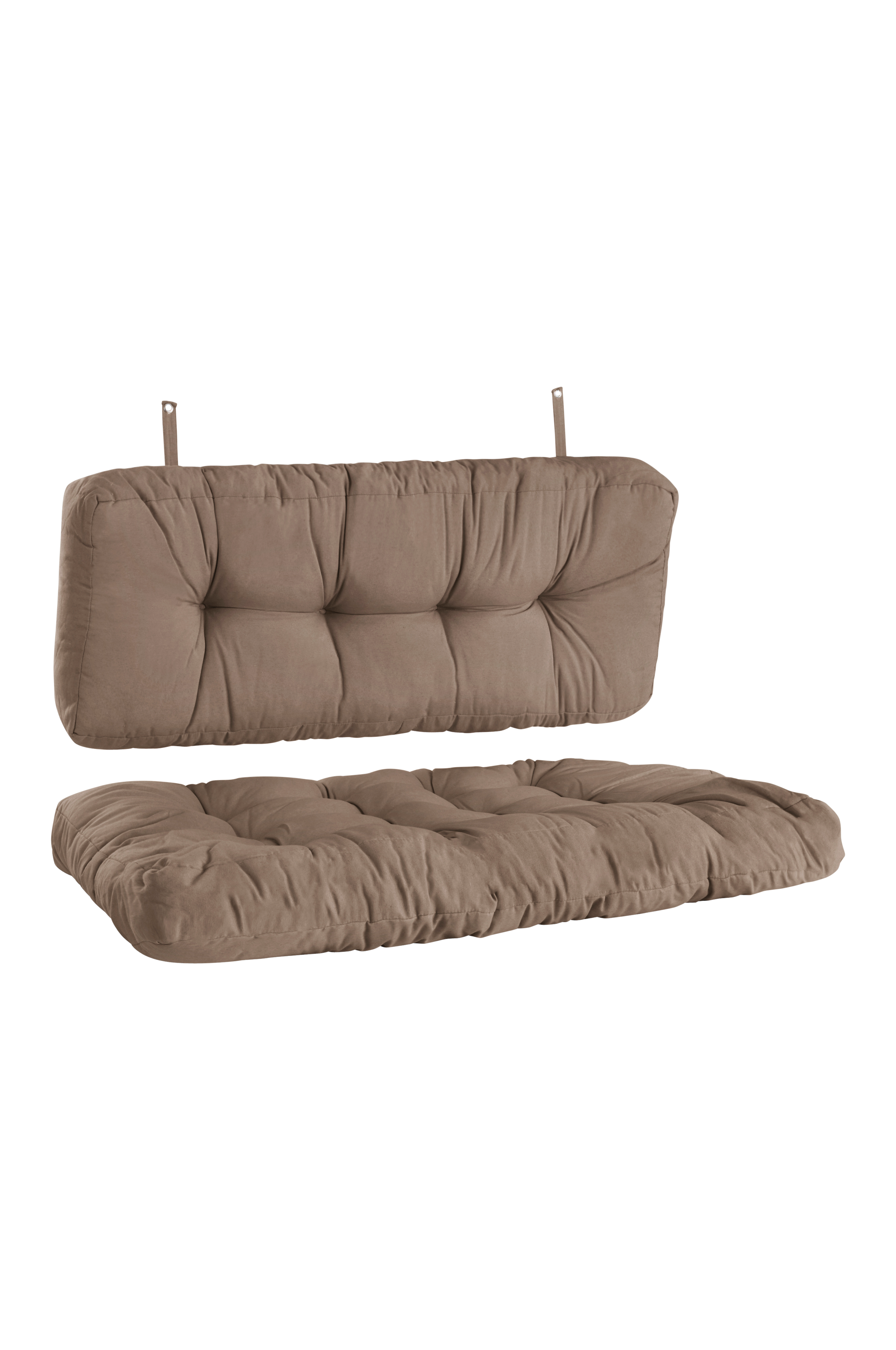 Dynset till utemöbler. Setet innehåller en sittdyna och en ryggkudde och de är anpassade för möbler som tillverkats av lastpallar (typen Eur-pall). Dynorna har klädsel av bomull, polyester och återvunnen fiber som stoppats med flockfyllning. För att fixa en sitthörna av lastpallar behöver du inte vara särskilt händig och med ett praktiskt dynset som passar blir det nästan för enkelt för att vara sant.