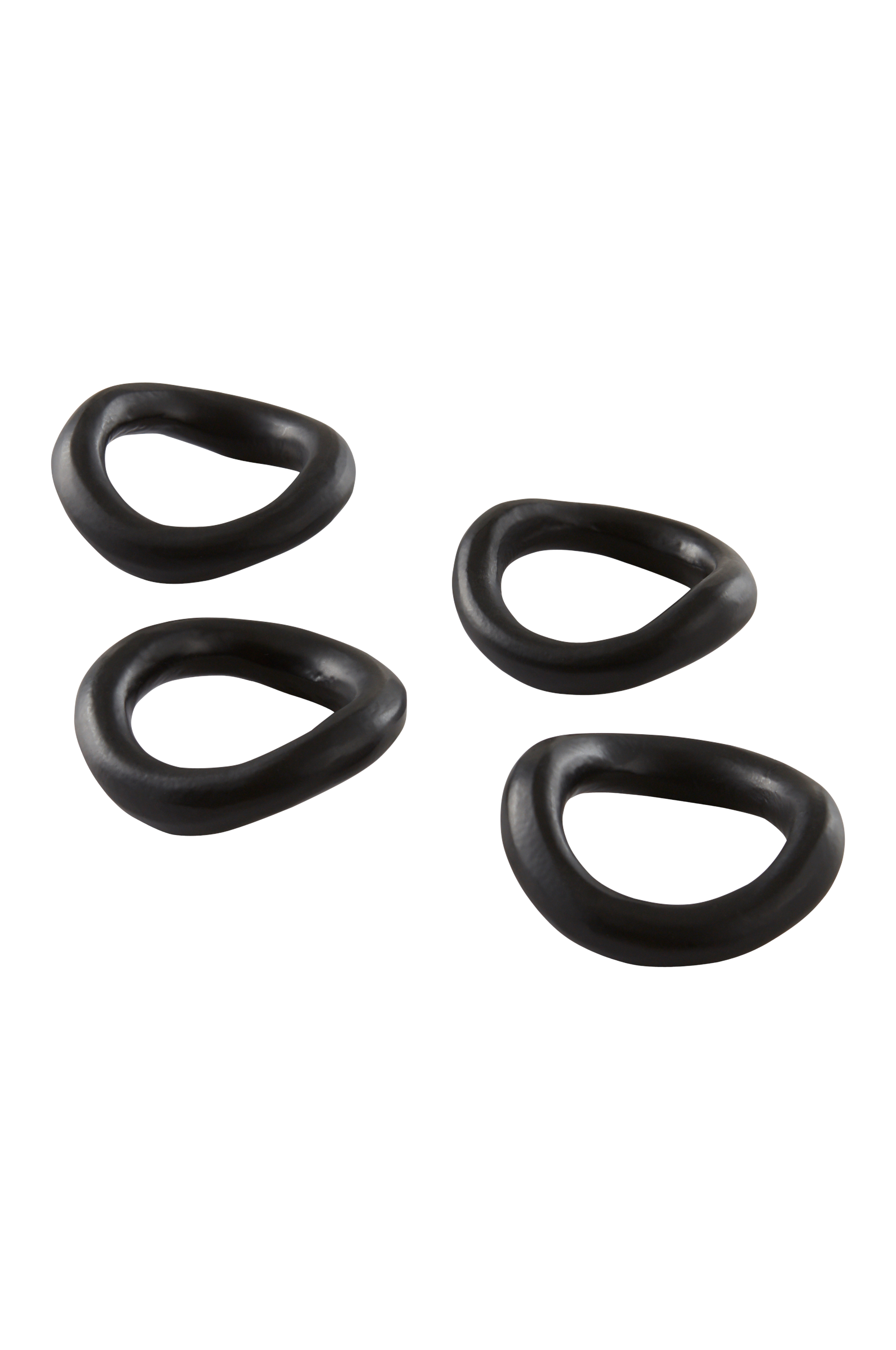 4-pack servettringar av aluminium. De organsikt och oregelbundet formade ringarna ger din dukning med textilservetter en mjuk känsla. Färgen är pulverlackerad och har matt yta.