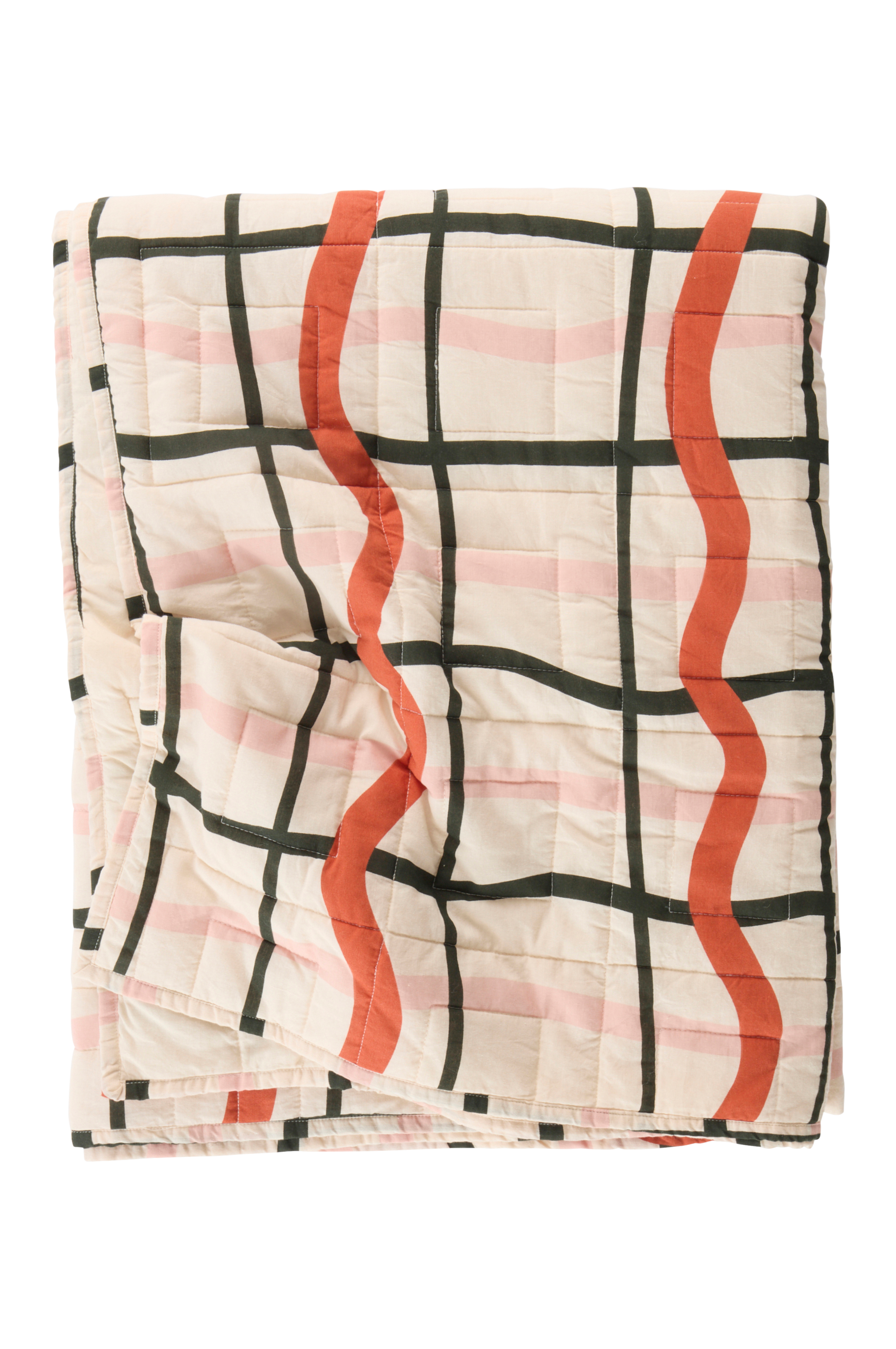 Överkast med ett oregelbundet rutmönster i harmoniska färger. Mjukt yttertyg i bomull som är tvättat för extra komfort, med fyllning i 100% polyester. Perfekt för barn- och ungdomsrum.