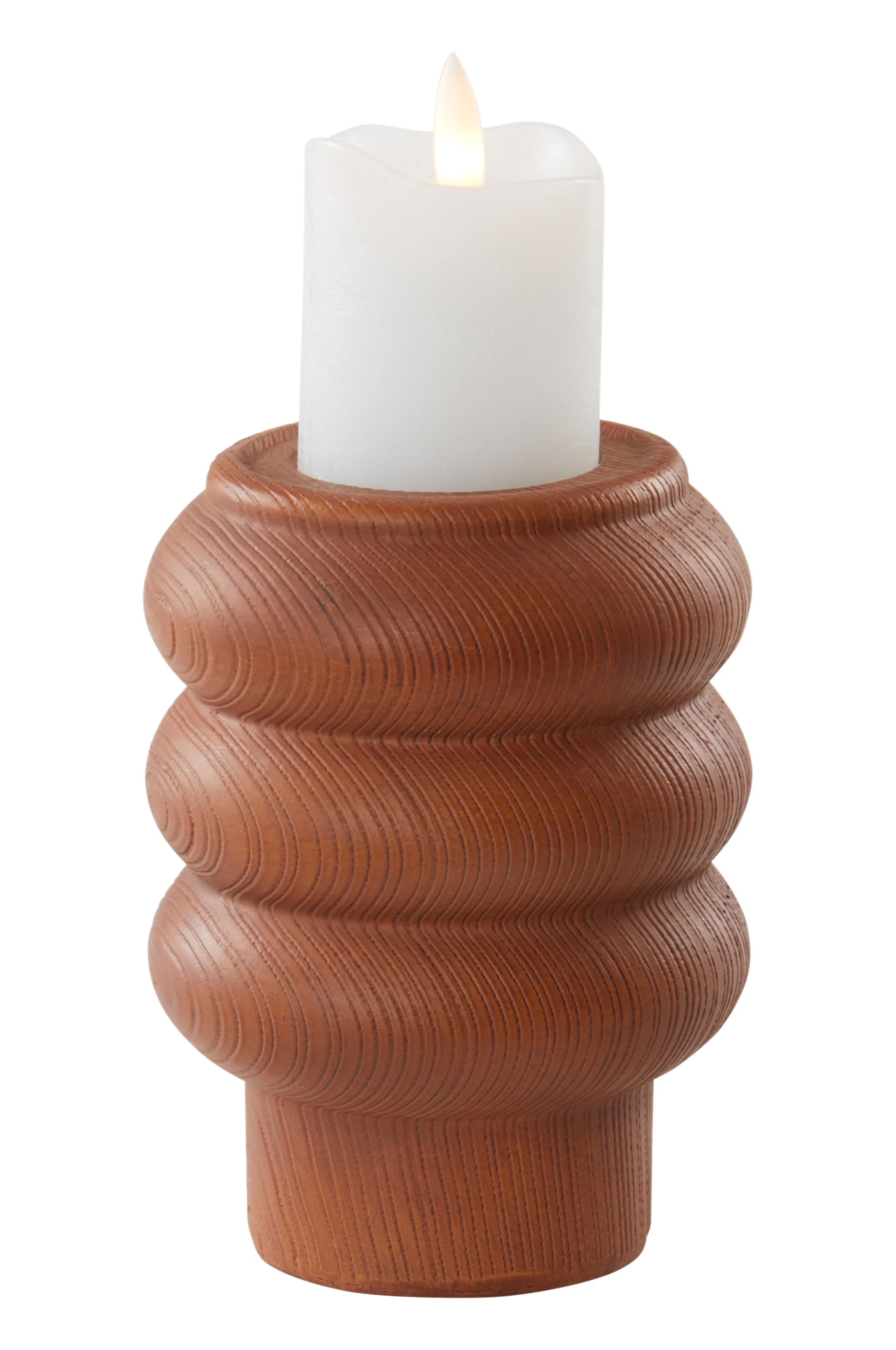 Fint formad ljusstake av polyresin med träfinish. Ljusstaken har härlig retrokänsla i sann nordisk anda. Ljus medföljer ej.