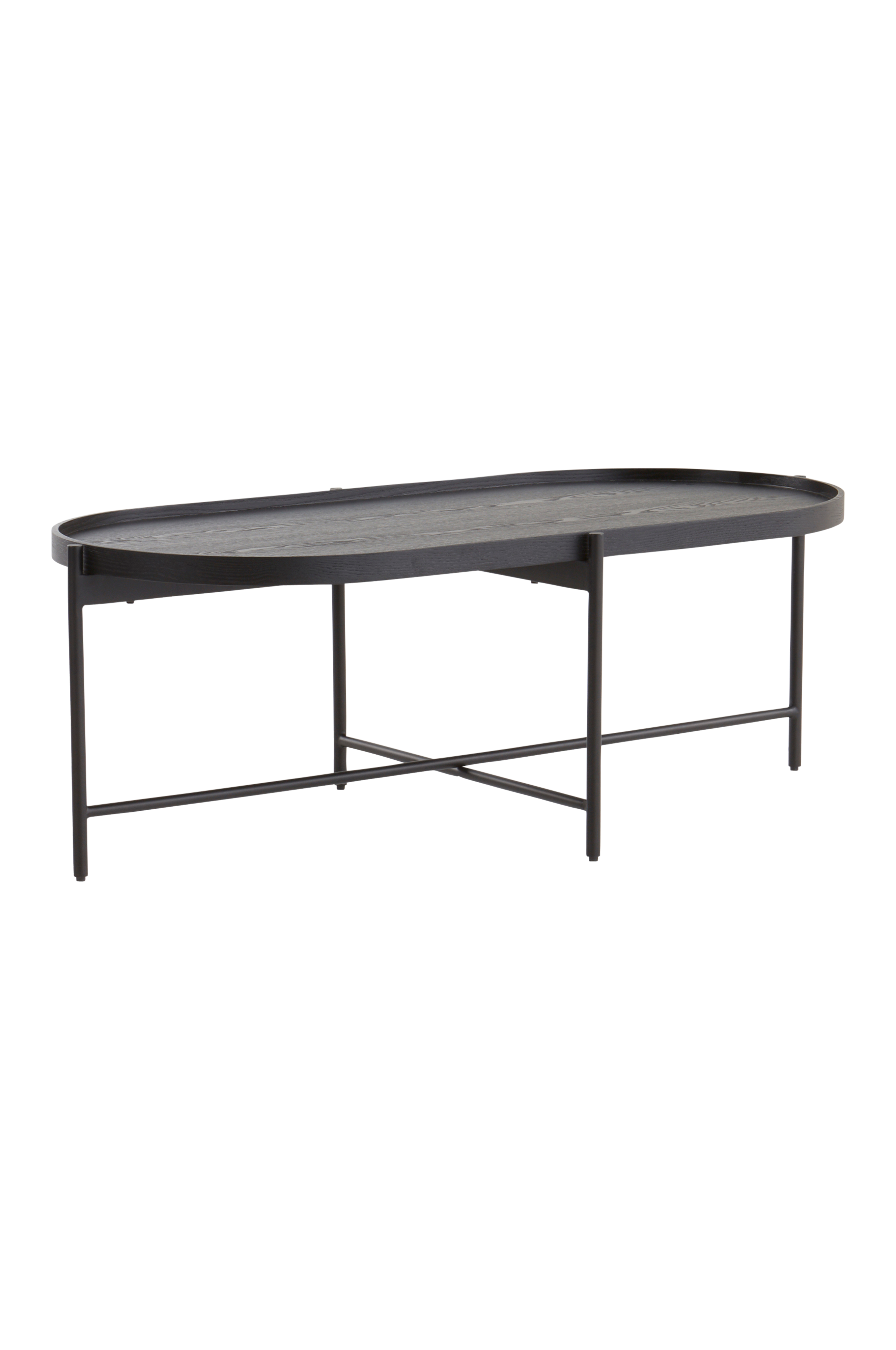 Ovalt soffbord med ben av stål och bordsskiva av FSC-certifierad MDF med askfaner. Bordsskivan har en liten kant runt om som snygg detalj. Den har svart, lackerad ytfinish och ådringen är snyggt diskret. Underredet är pulverlackerat och det omsluter bordsskivan på utsidan, så känslan av att bordsskivan vilar i underredet förstärks. RENO är ett lättplacerat soffbord som smälter in på ett behagligt sätt. Den mjuka, ovala formen gör det lätt att passera runt bordet och slå sig ner i soffan. Viss montering krävs. Monteringsanvisning medföljer.