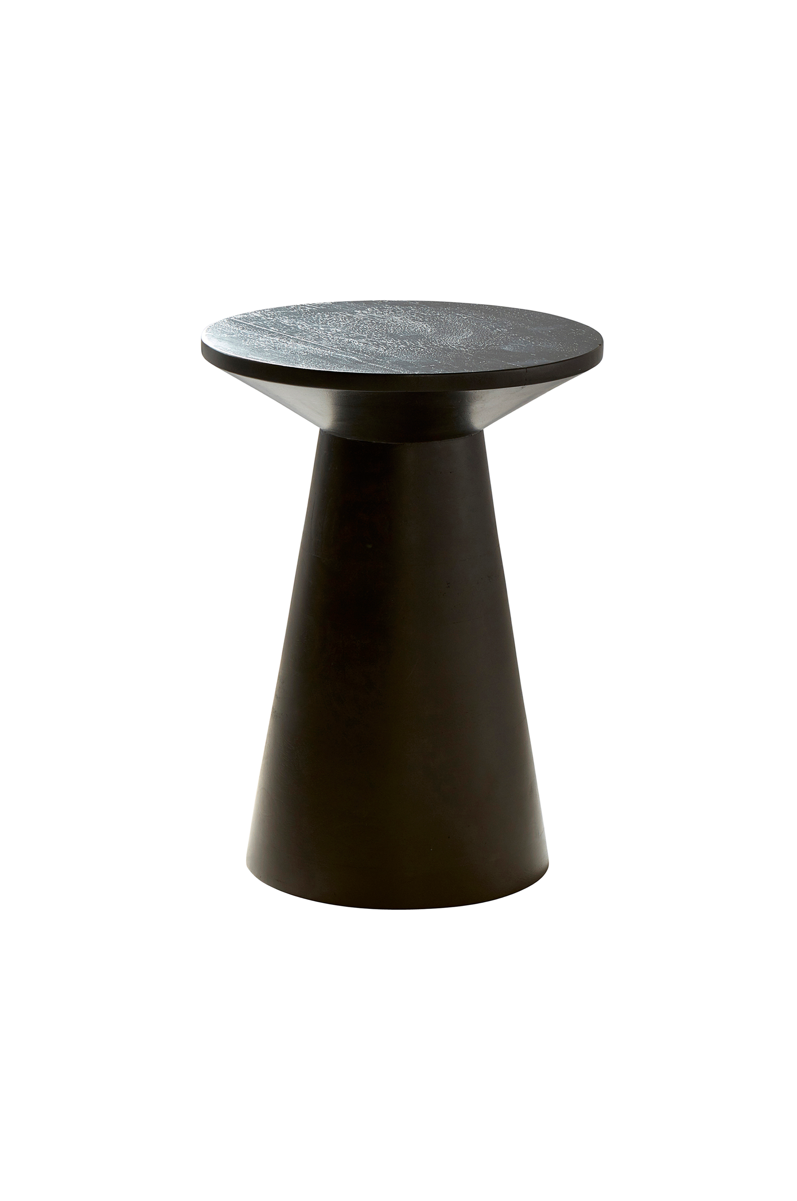 Beskrivning: Rund pall/sidobord av målat mangoträ.