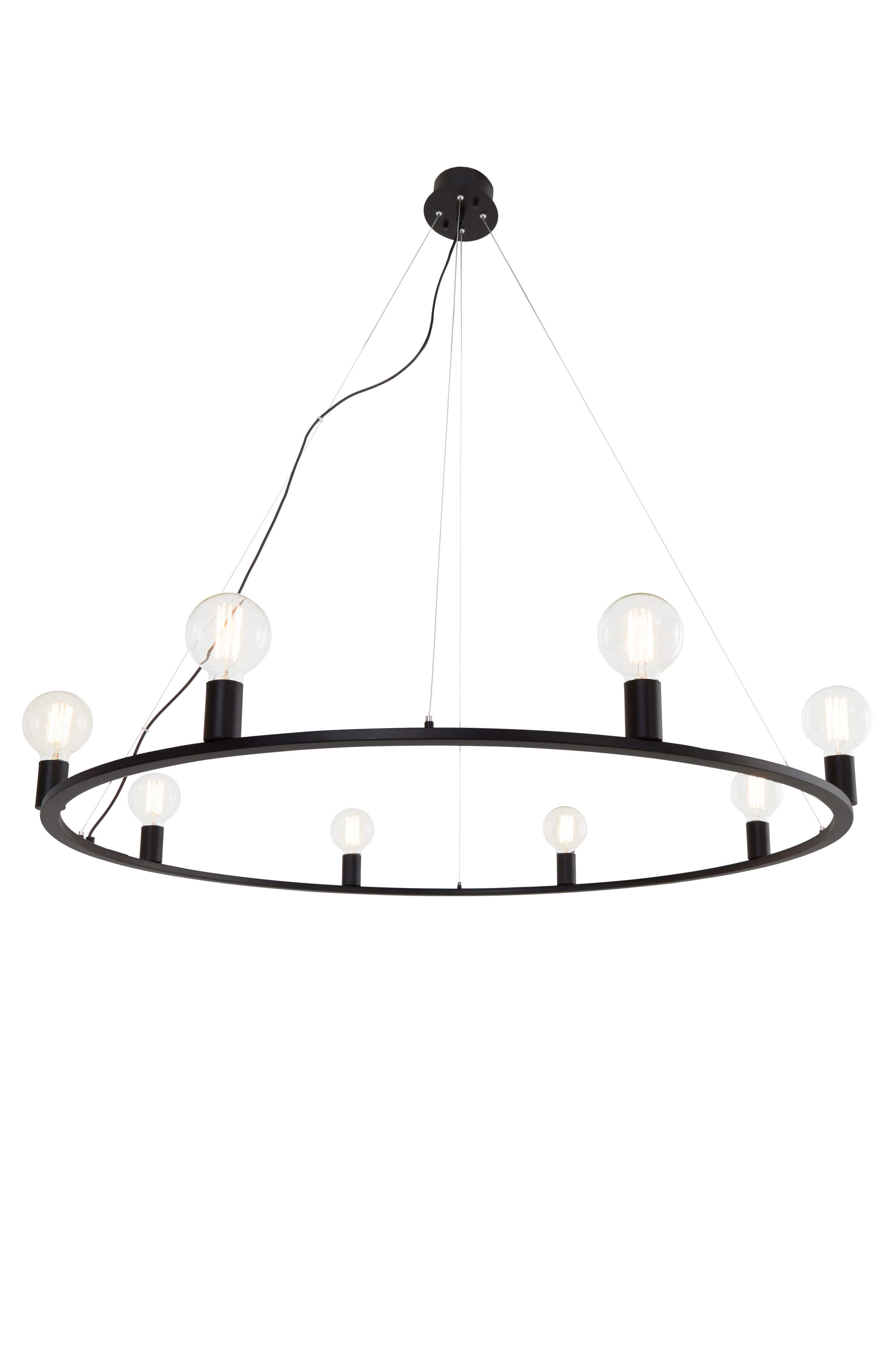 Taklampa av metall med åtta ljuspunkter. ROYAL är en trendig taklampa som har inspirerats av den traditionella ljuskronan och blivit en modern, stilren taklampa. Upphängningen består av fyra justerbara vajrar som är 2 meter vardera. Sladd 2,4 m.