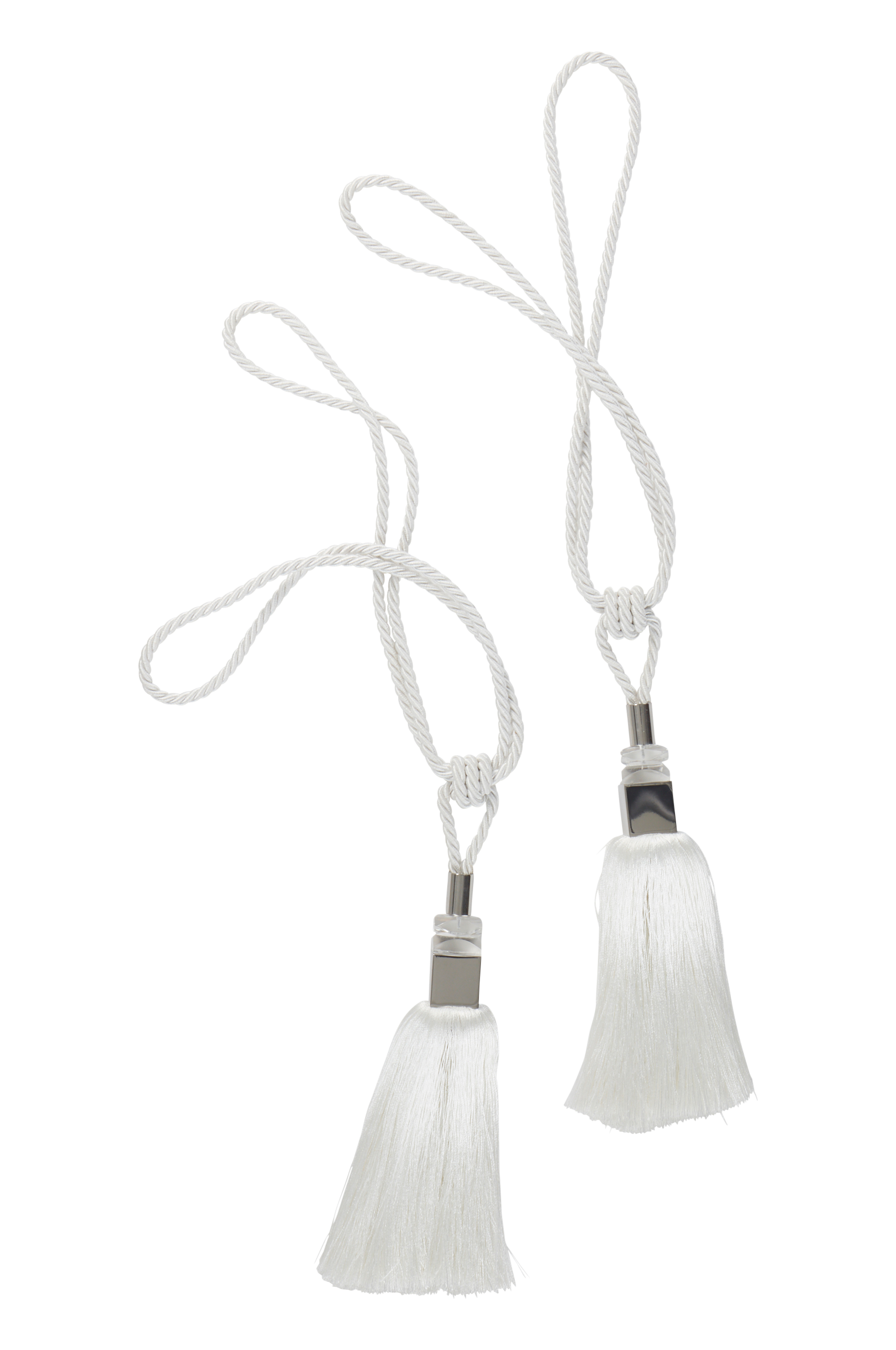 2-pack omtag av polyester. SASKIA har en elegant tofs på varje omtag med fint fäste av transparent akrylglas och stål. Med dekorativa omtag, likt SAKSIA, får du en snygg gardinuppsättning på ett enkelt sätt.