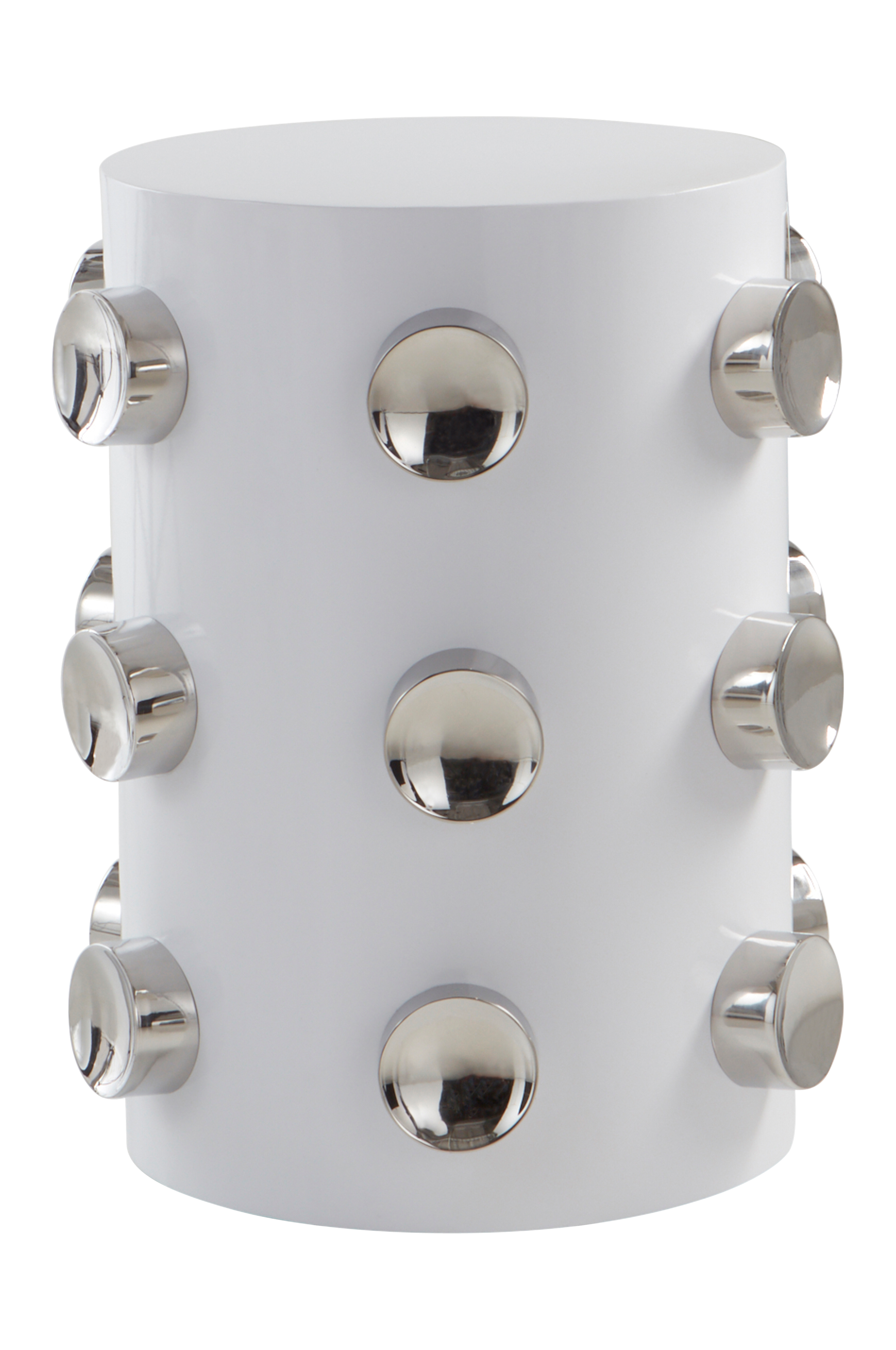 Sidobord av rostfritt stål. Det runda bordet har spännande design. Bordet är i pulverlackerat stål med kromad finish på de runda dekorationerna. Bordet är en glädjekick som ger en pigg känsla i ditt rum. Ett sidobord som SATURNUS kan du ha på många ställen i hemmet, utmana din fantasi.