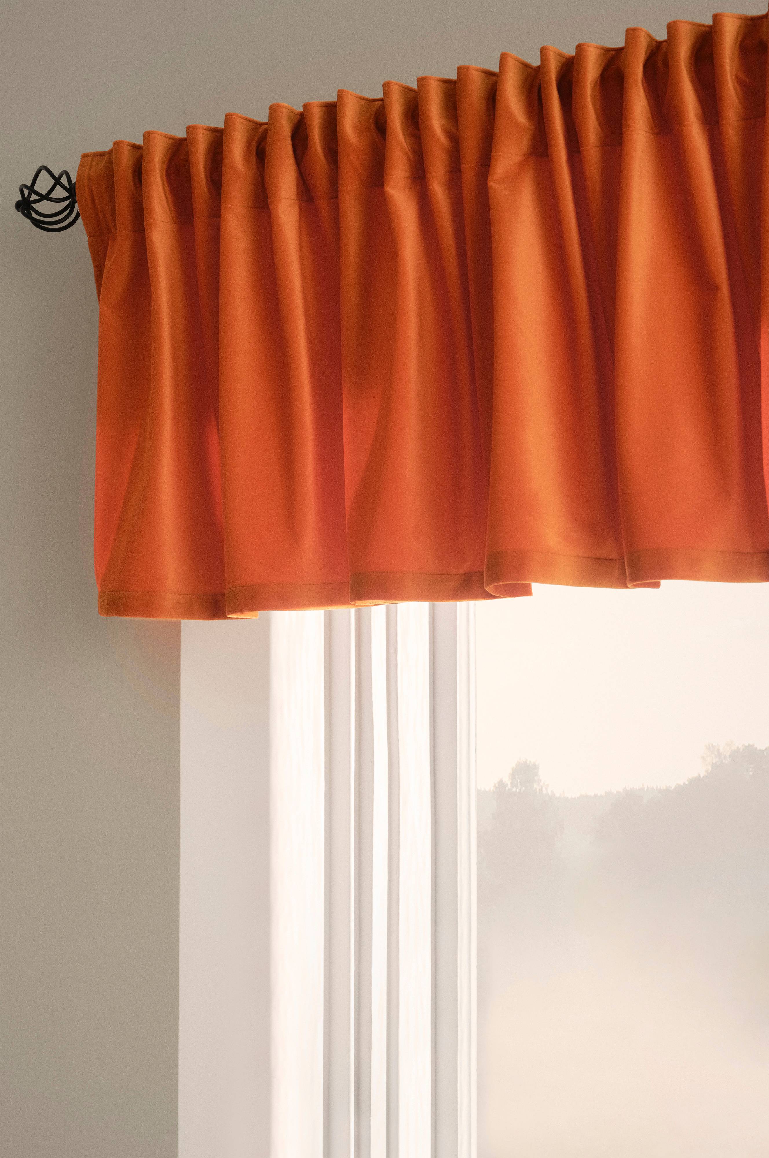 Gardinkappa i enfärgad sammet av polyester. Sammet har fin lyster och mjuk känsla, färgen skimrar vackert i olika ljus.