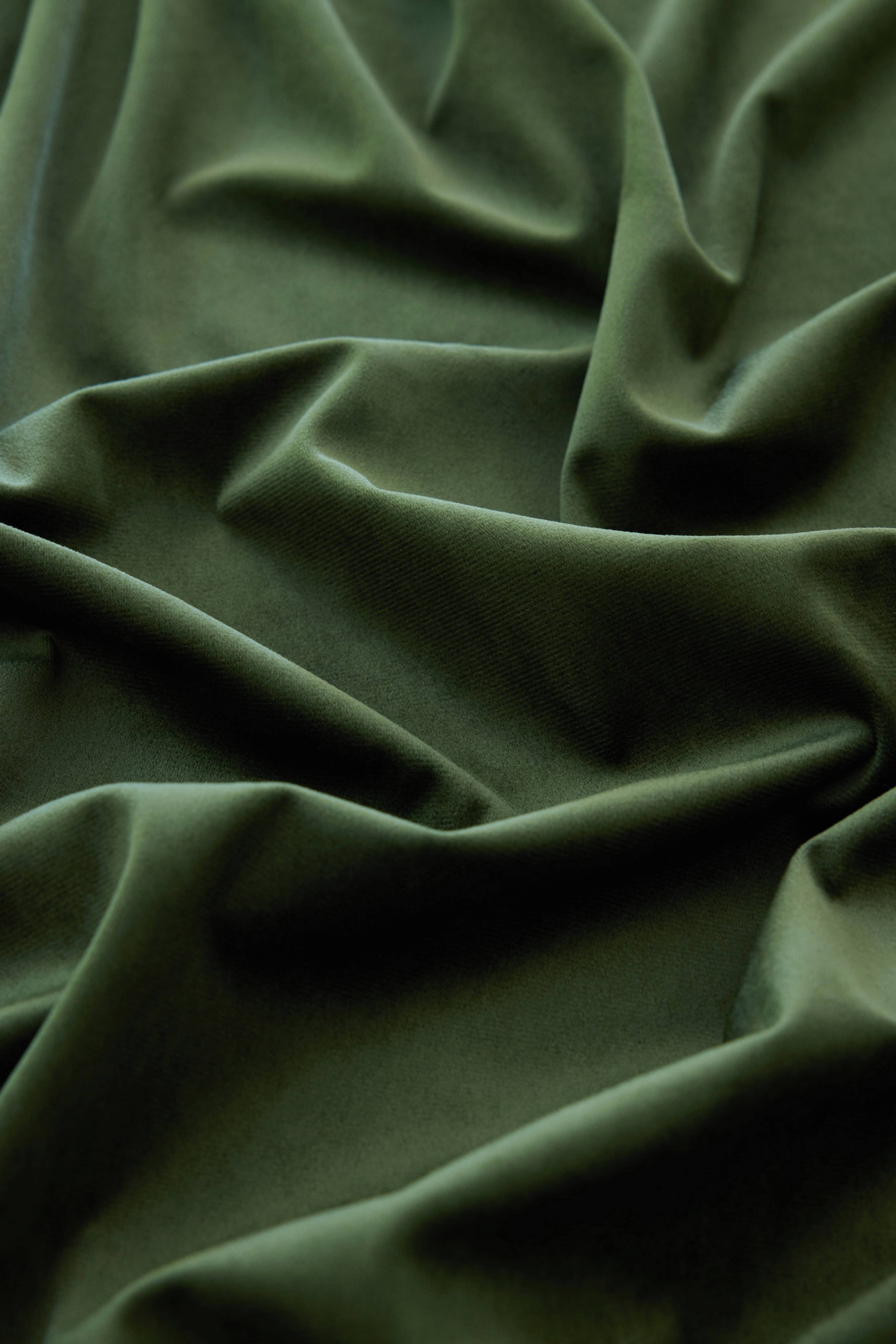 En gardinlängd i enfärgad sammet av polyester. Sammet har fin lyster och mjuk känsla, färgen skimrar vackert i olika ljus.