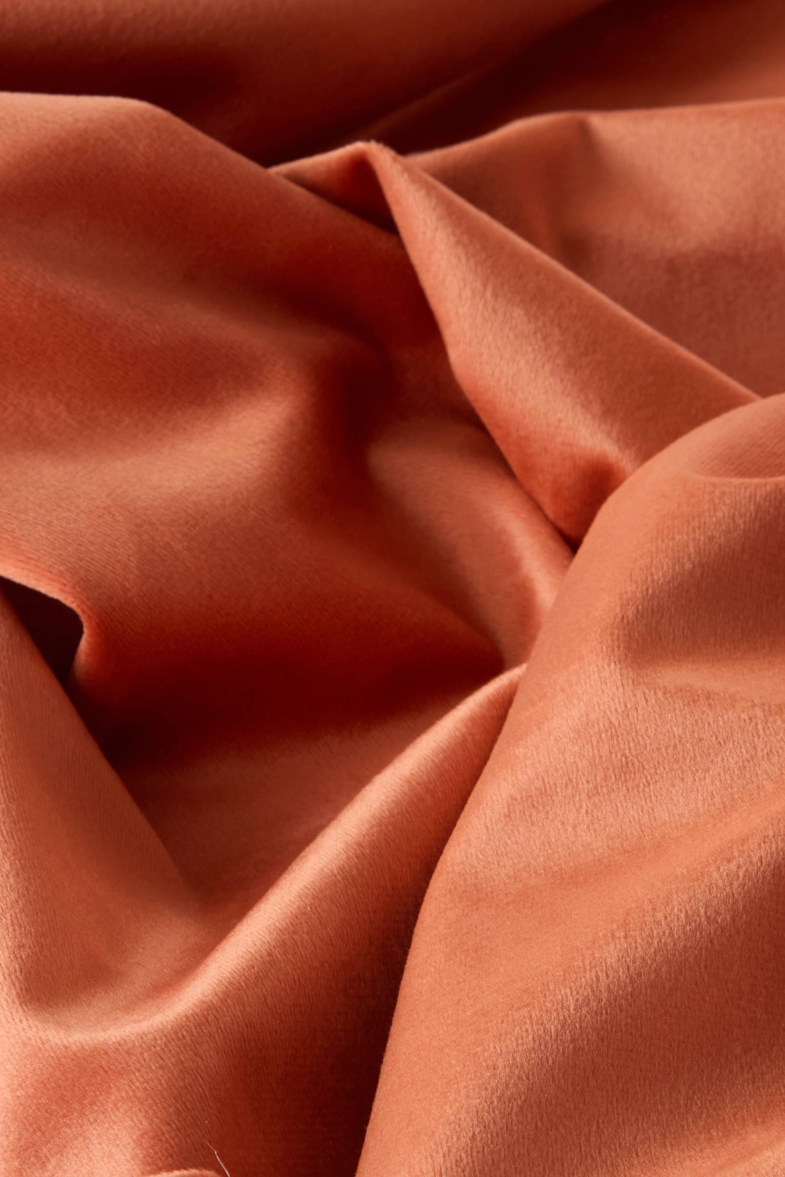 En gardinlängd i enfärgad sammet av polyester. Sammet har fin lyster och mjuk känsla, färgen skimrar vackert i olika ljus.