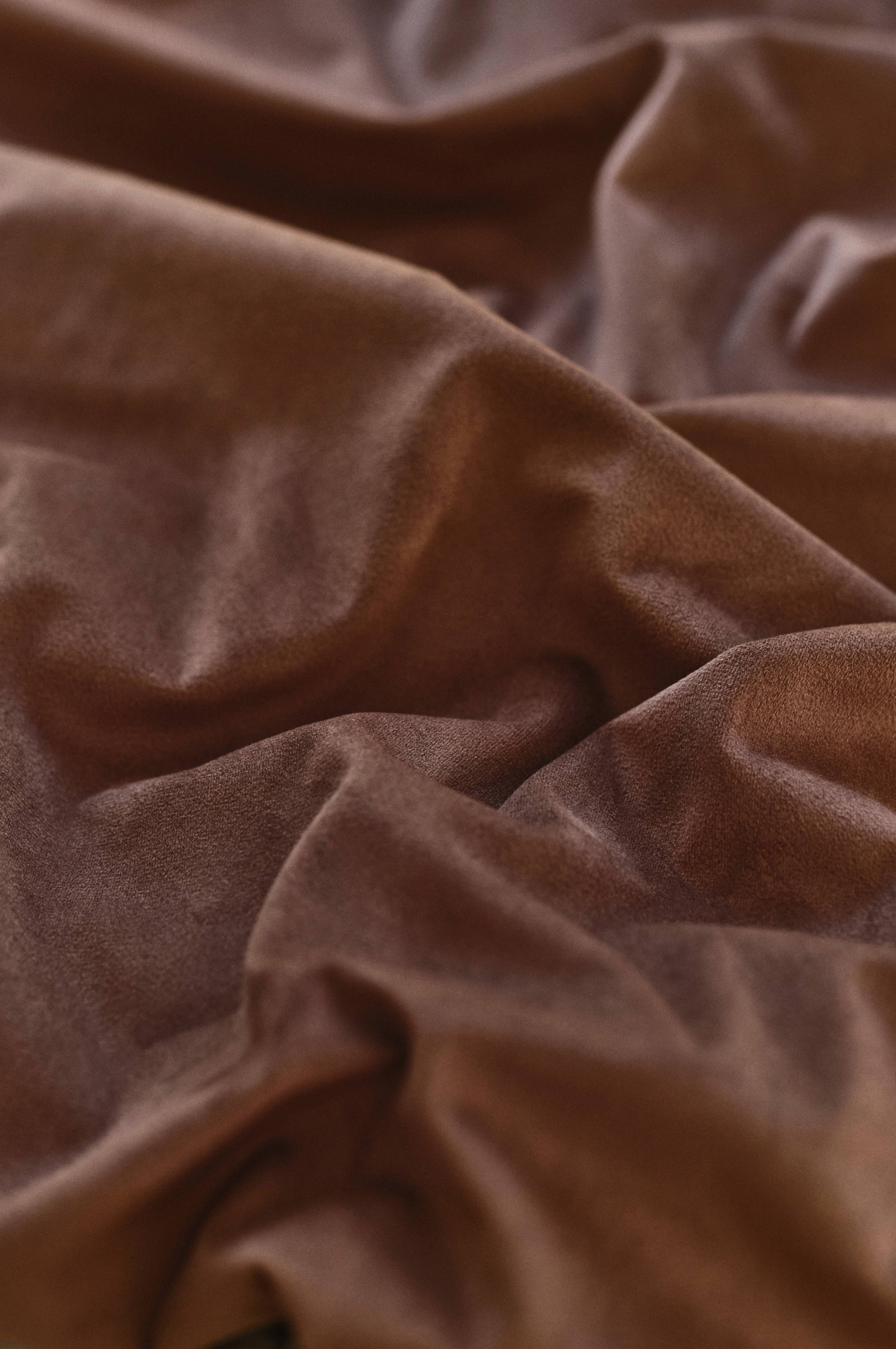 En gardinlängd i enfärgad sammet av polyester. Sammet har fin lyster och mjuk känsla, färgen skimrar vackert i olika ljus.