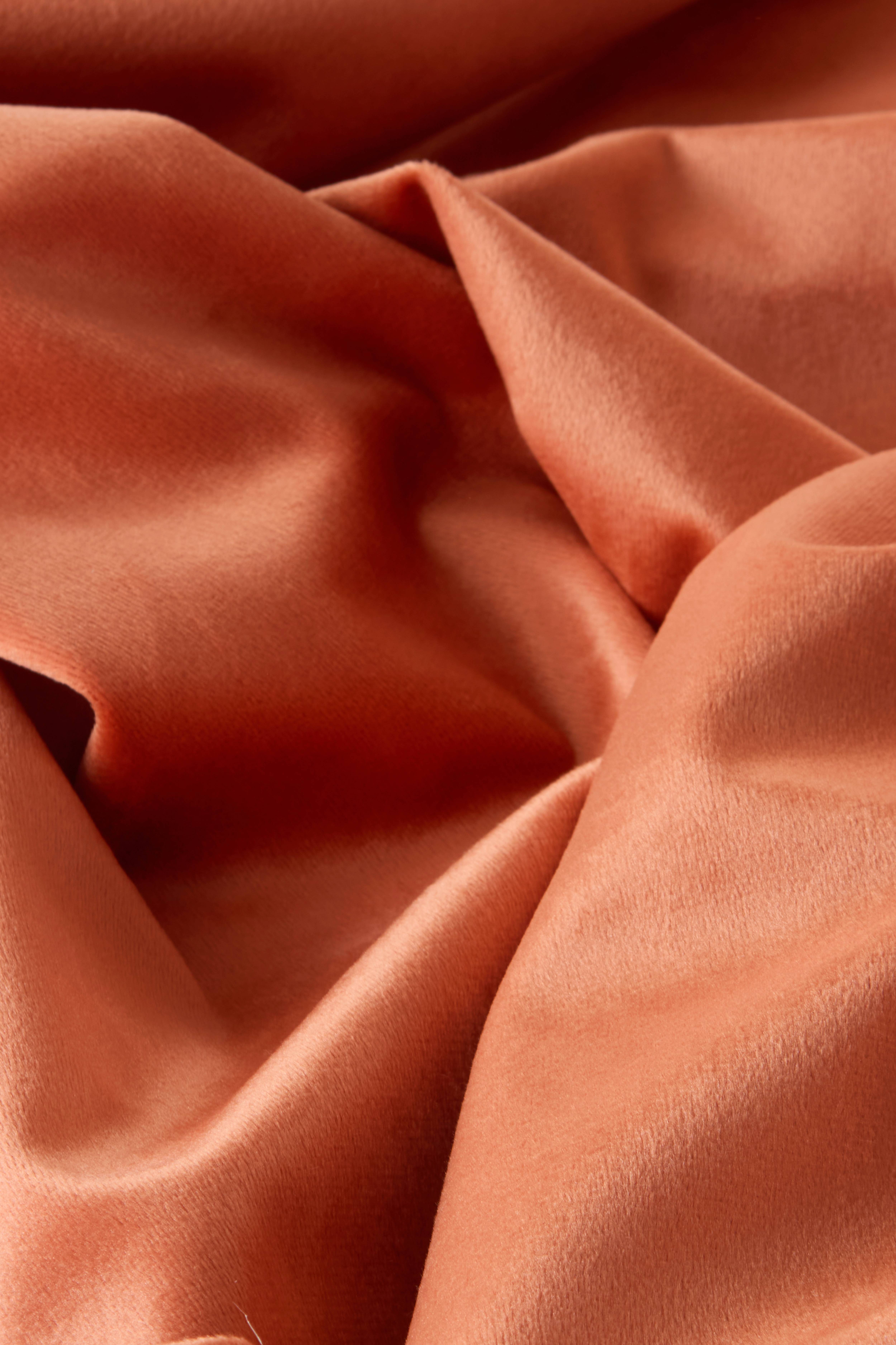 En gardinlängd i enfärgad sammet av polyester. Sammet har fin lyster och mjuk känsla, färgen skimrar vackert i olika ljus.