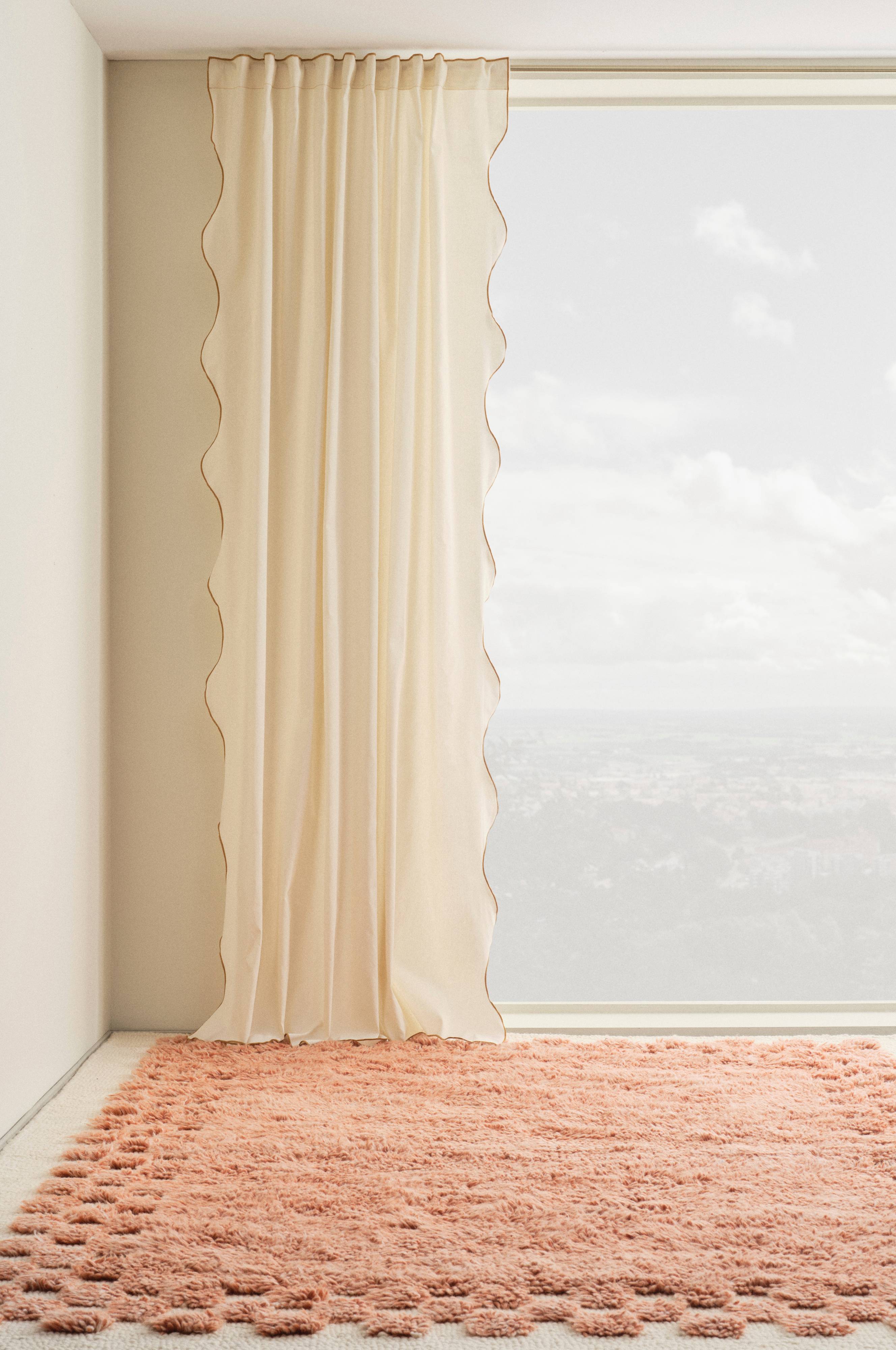 Charmig multifunktionell gardin i mjuk bomull med en härlig vågkant. Denna multifunktionella gardin är perfekt för barnrum och ger fönstren en rolig och finurlig känsla.