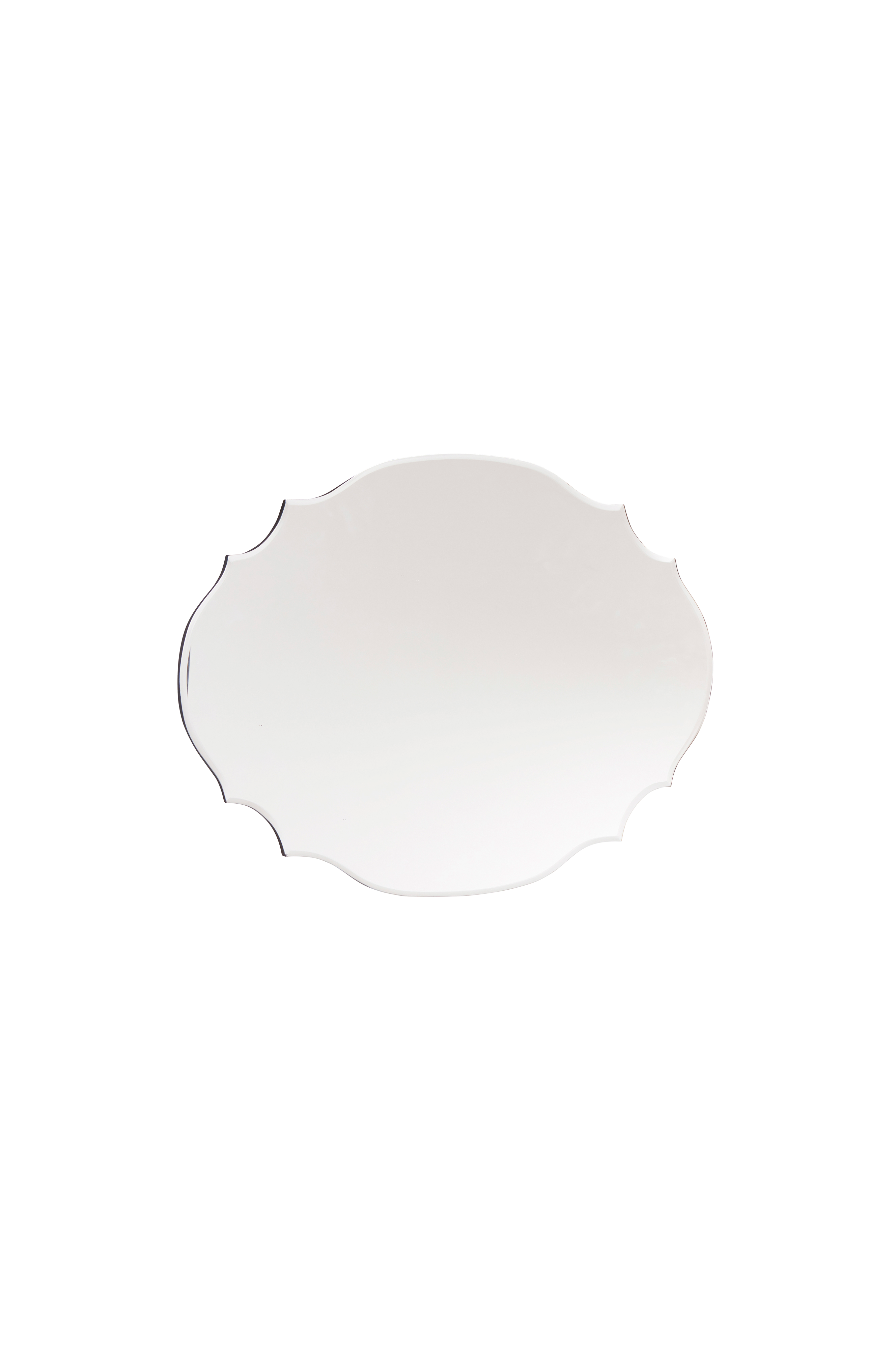 Spegel med romantisk och lite gammaldags känsla, både i form och stil. Spegeln är utan ram och har en tunn, svart sarg på sidorna runt spegeln. Du kan hänga den liggande eller stående, upphängningshakar finns åt båda hållen. Denna spegel passar även bra i badrum och våtutrymmen.