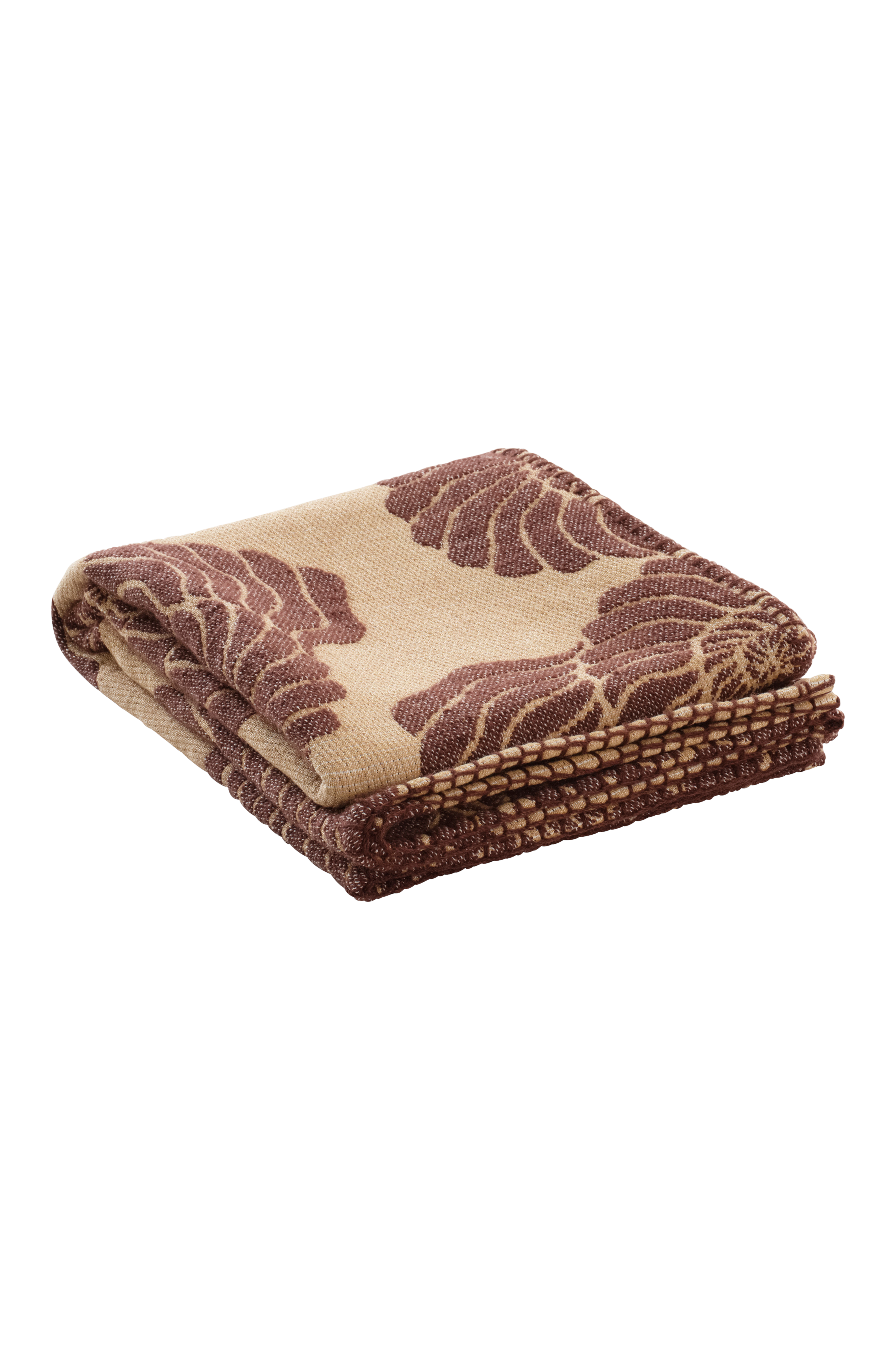 SHIELA-pläden har en vacker jacquarddesign i ull och bomull, med fyrsidig fållning och intrikata sömmar. Den förhöjer inredningen med skandinavisk charm, värme och stil. Det eleganta mönstret passar till många olika inredningar och gör pläden till en mångsidig accessoar i alla rum.