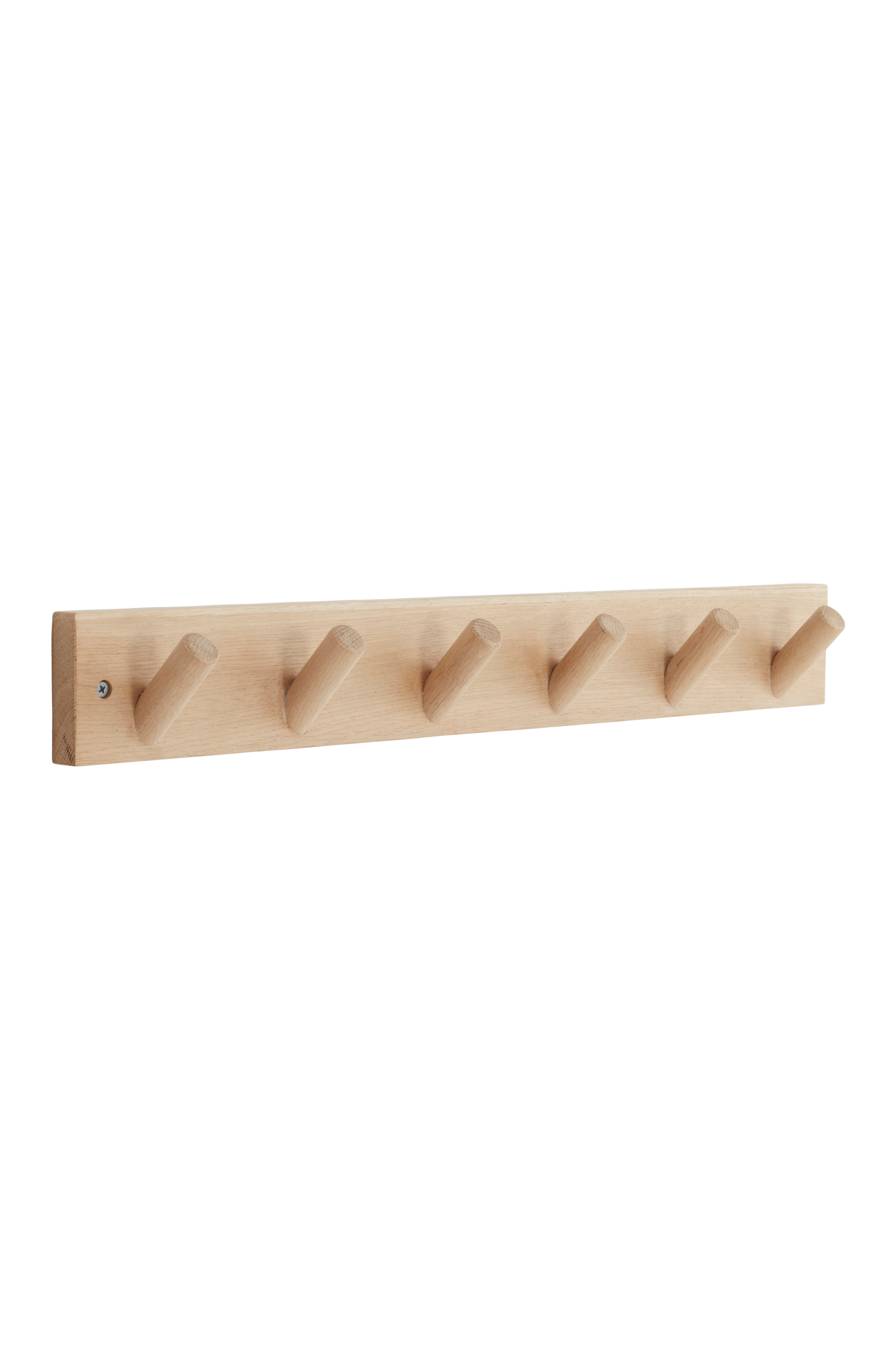 Fin knaggracka i ljust trä. God vinkel på knaggen så att jackor osv inte faller av.