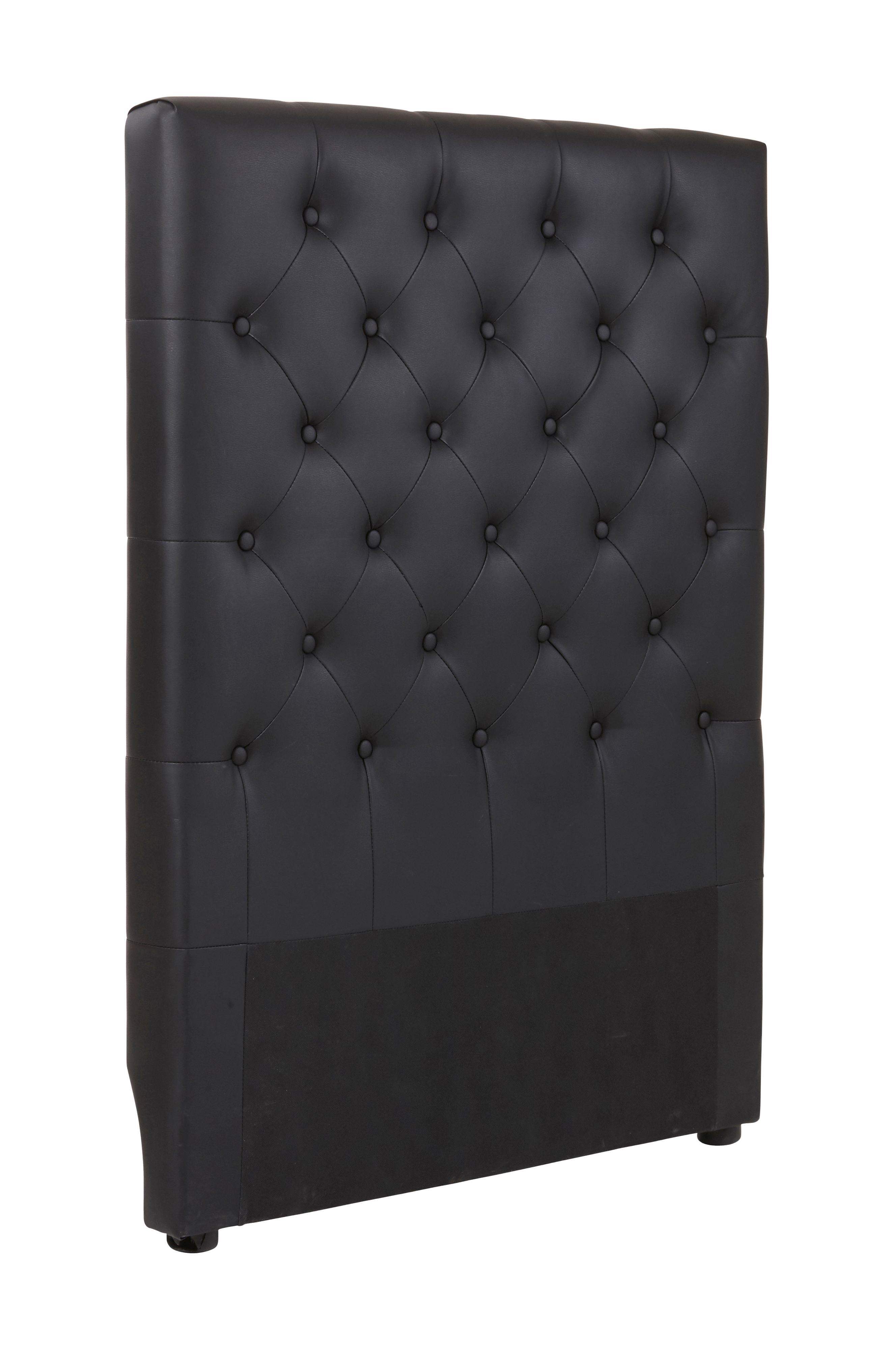 Fristående gavel klädd med konstskinn och djuphäftade klädda knappar. Skapa en personlig stil och lyxig känsla i sovrummet med en gedigen sänggavel i finaste konstskinn. Väggfästen medföljer.